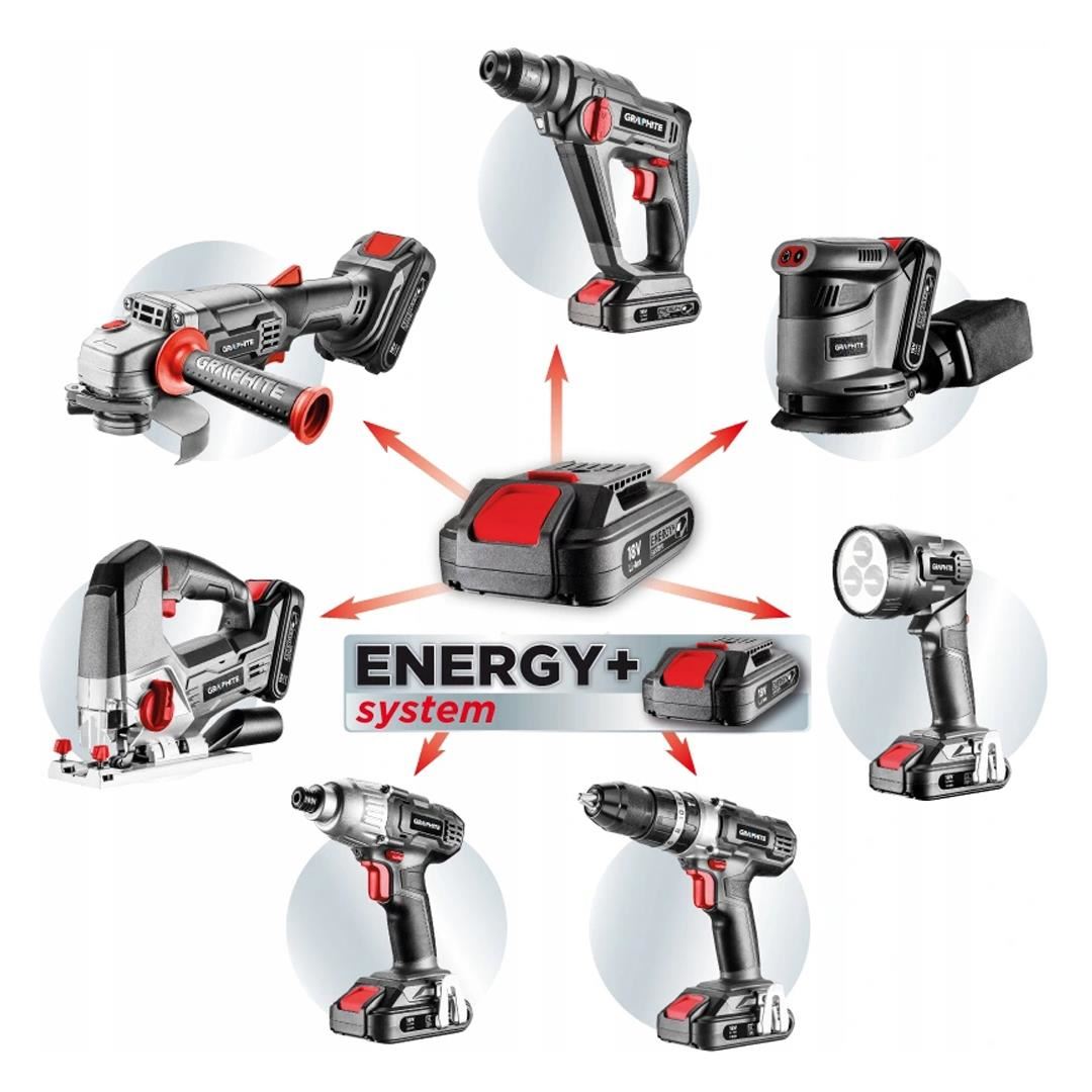 - Graphite kétsebességes fúrógép  -vel működik; Li-Ion Graphite Energy + 18 V akkumulátor.