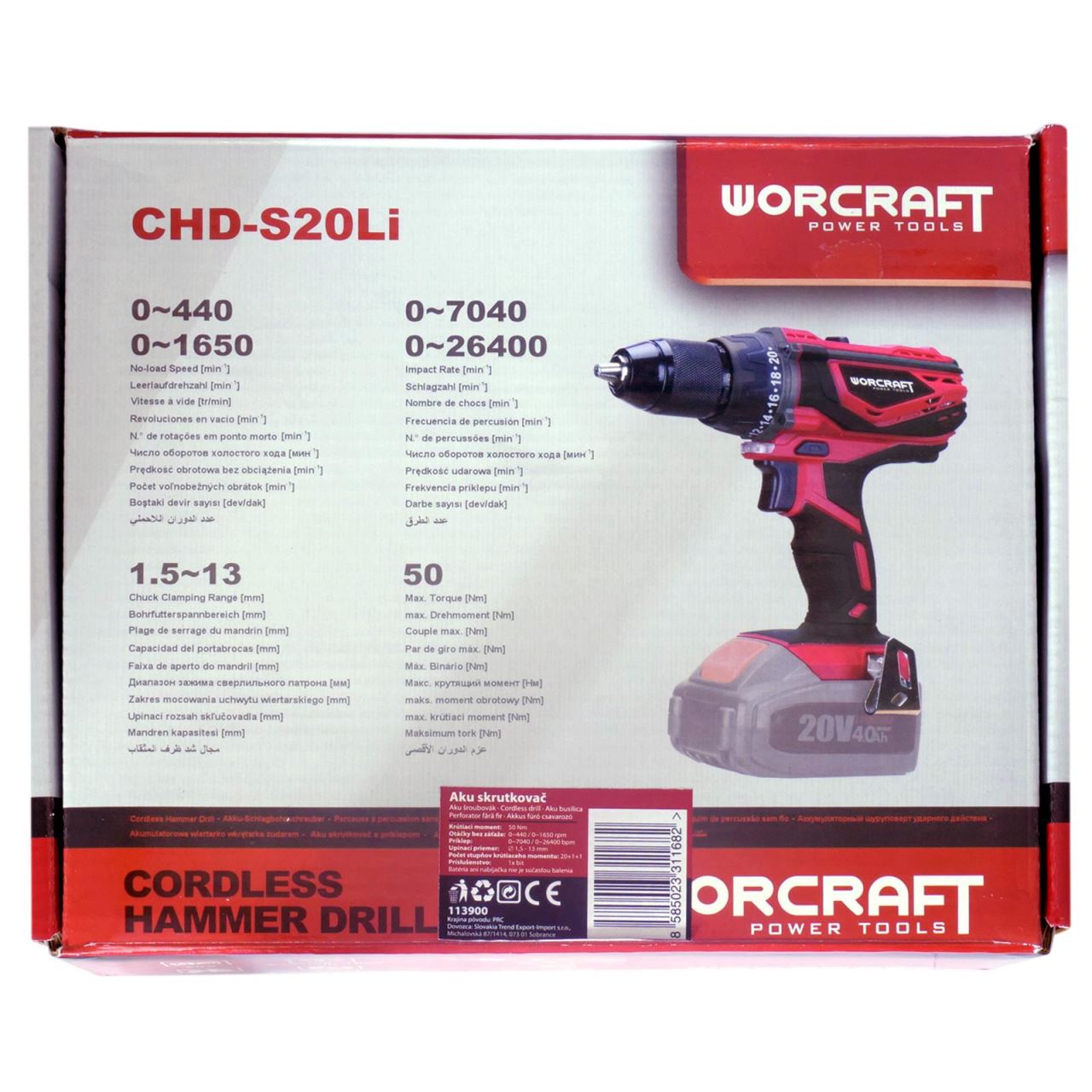 Fúrógép, csavarhúzó (fúró), ütős, akkumulátoron, 20 V Li-ion (az akkumulátor nem tartozék), automata tokmány 13 mm, Worcraft