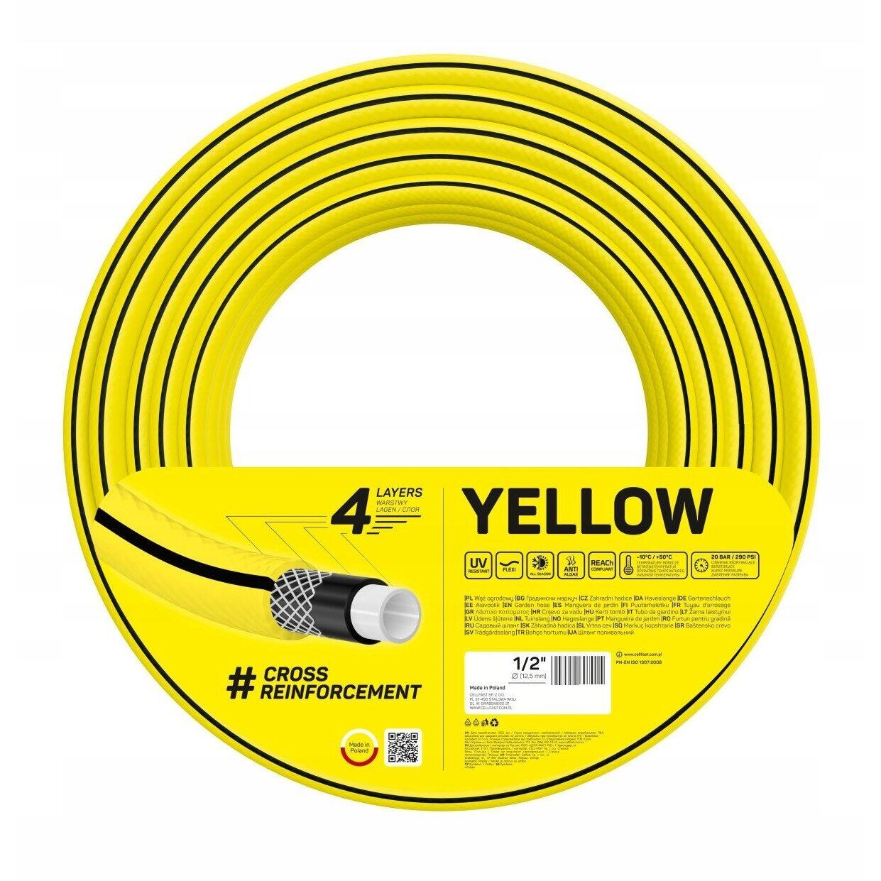 Furtun gradina Cell Fast Yellow, 4 straturi, 1/2", 50m, 2 cuple, adaptor (141000)