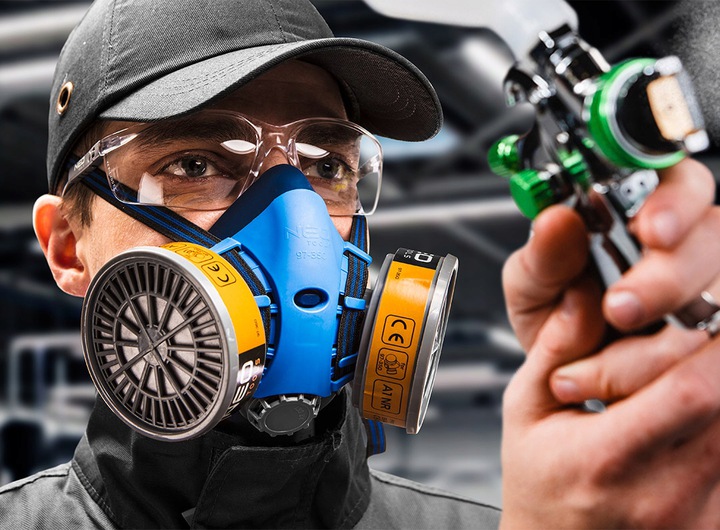 Gázálarc, szilikon, festék, nedvszívó szűrővel, porszűrővel, NEO