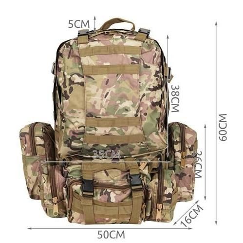 Taktikai hátizsák / hátizsák, 3 levehető rekesszel, 600D poliészter, 45 L, 50x16x60 cm, Isotrade