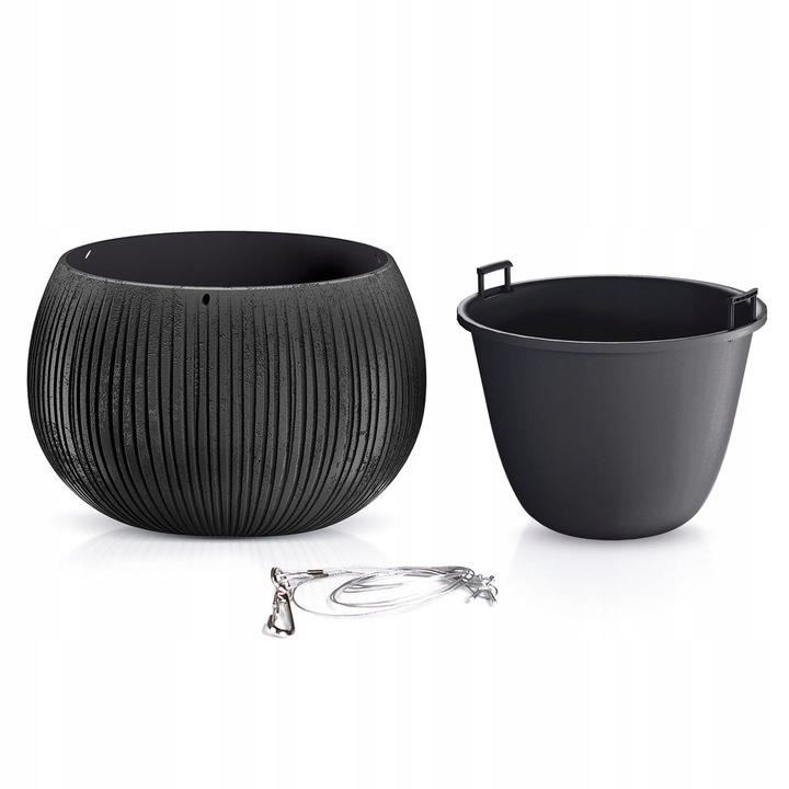 Az ajánlat 3 darabot tartalmaz: díszedény + belső edény + fémlánc, így az egyedi kialakításnak köszönhetően az edény lánccal vagy anélkül is használható , évszaktól, illetve elhelyezni kívánt helytől függően.