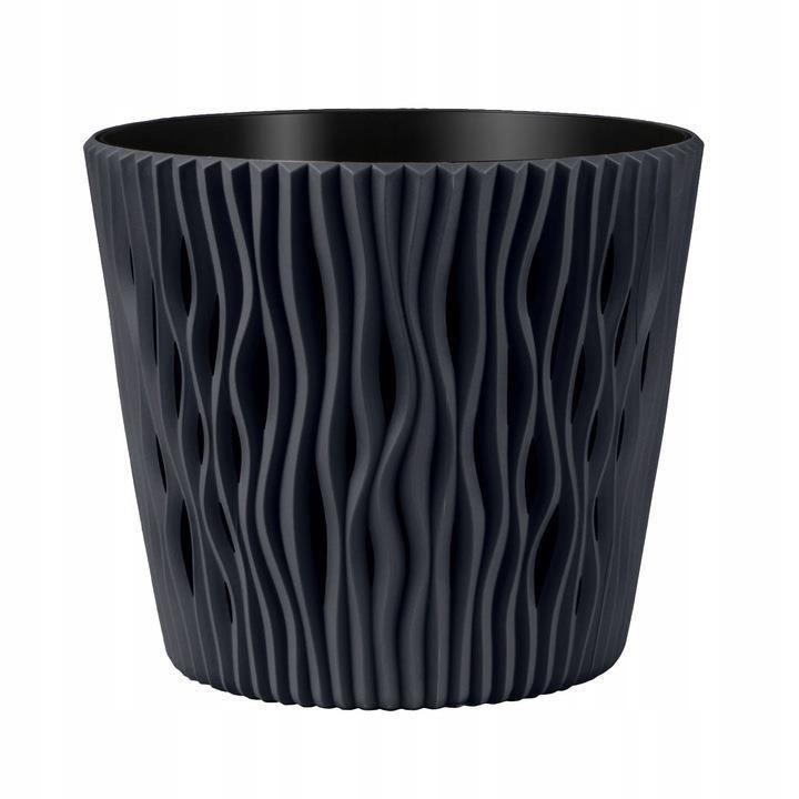 Dekoratív virágcserép, kerek, antracit, 7,9 L, 26,2x22,2 cm, Sandy Round