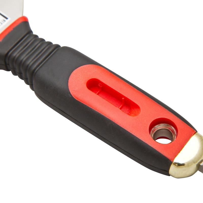 Professzionális gipszkarton rozsdamentes gipszkartonhoz, 150 mm. Az ergonomikus fogantyú kényelmes munkát tesz lehetővé. Könnyen mosható és karbantartható. A fogantyú egy résszel van ellátva egy Ph2 bit számára a gipszkartonon használt csavarok meghúzásához.
