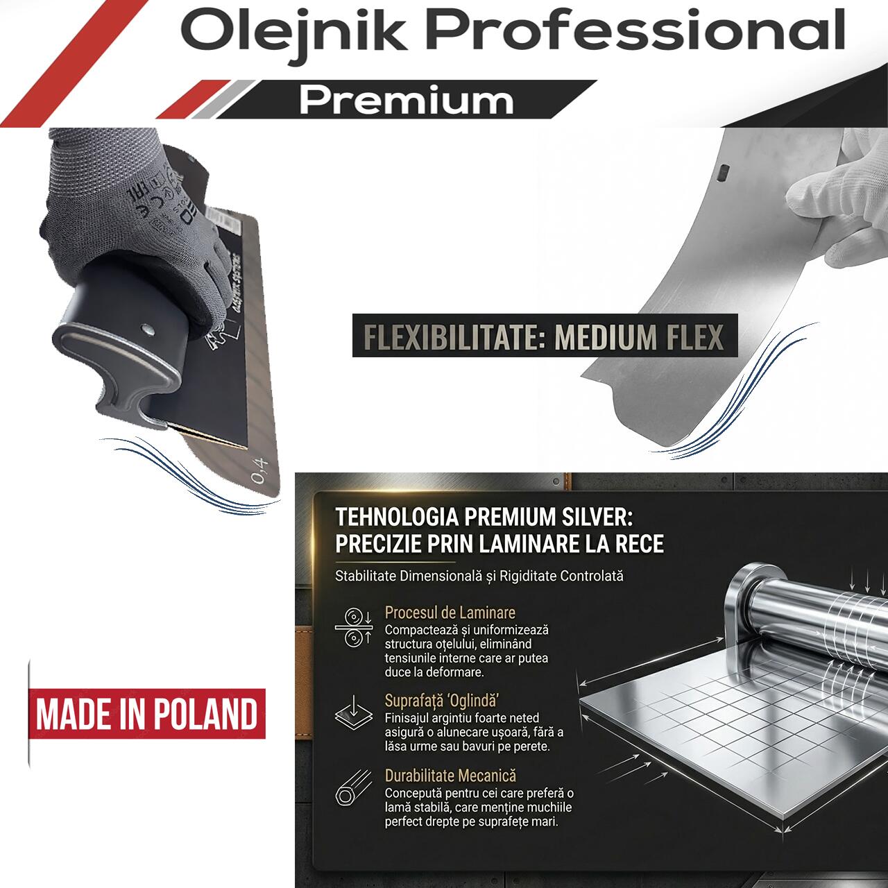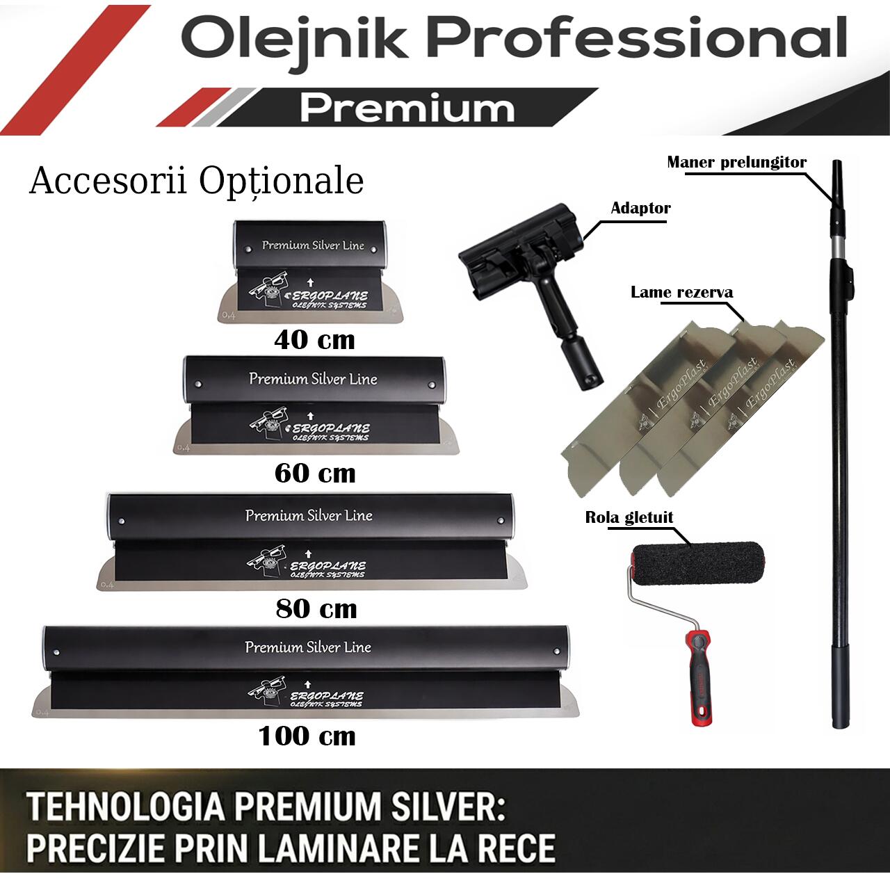 Gletiera profesionala Olejnik ERGOPLANE, Premium Silver, aluminiu, 800x0.4mm (1239800G4PS)
