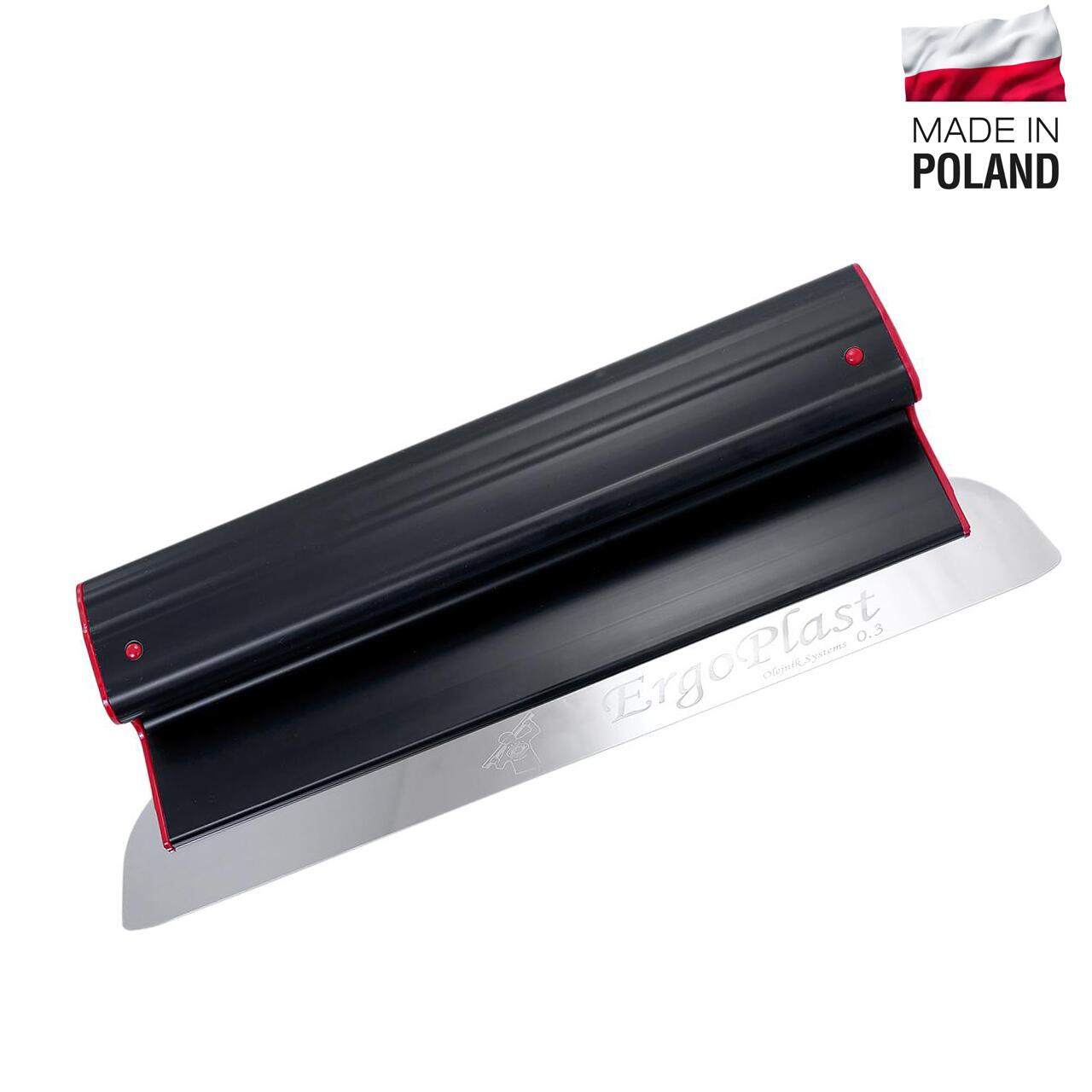 - Vékony, sima, 0,3 mm-es rozsdamentes penge, rugalmas, lekerekített élekkel, bármilyen felület simítását teszi lehetővé, mind a gipszkarton, mind a klasszikus vakolat, betöltő simító és befejező simító. A penge nagyon nagy kopásállósággal rendelkezik, és a sarkainál le van vágva, hogy ne hagyjon nyomokat a kiegyenlítendő anyaggal érintkezve. Építkezéseken való mindennapi használatra tervezték.