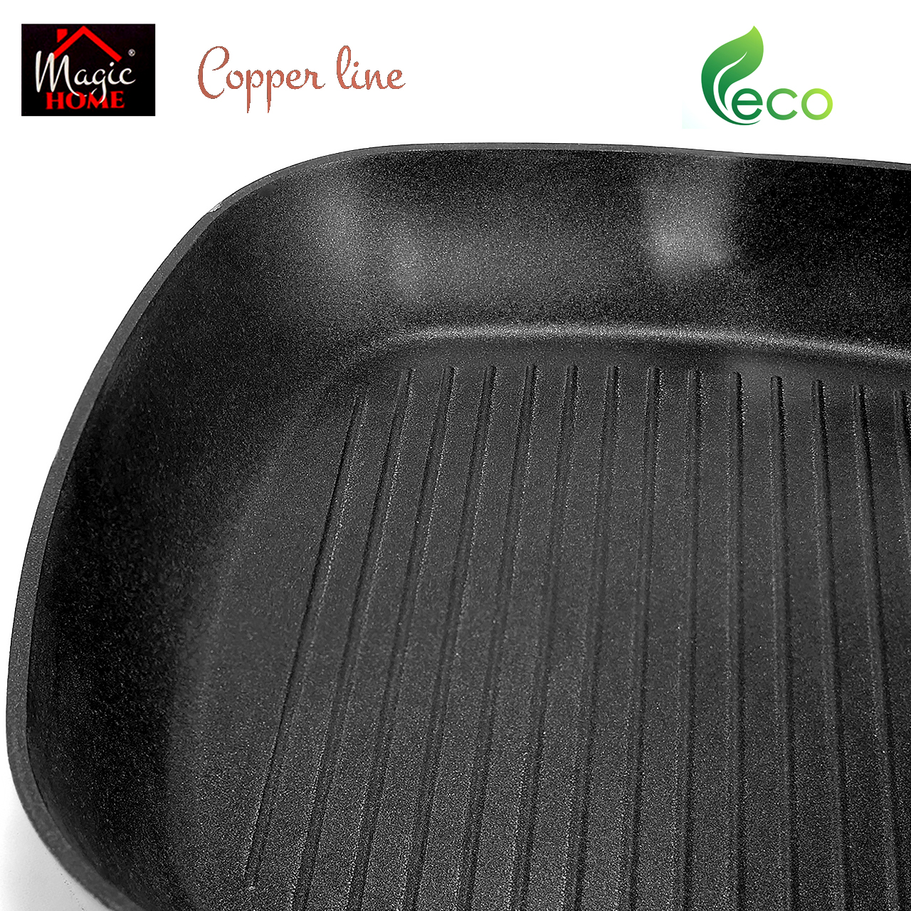 28 x 28 cm-es tapadásmentes grillserpenyő, Cooper Line, Magic Home Az   préselt alumíniumból készült; KIVÁLÓ MINŐSÉGŰ professzionális serpenyőkhöz használható. 100% ECOLOGIC &ndas ...
