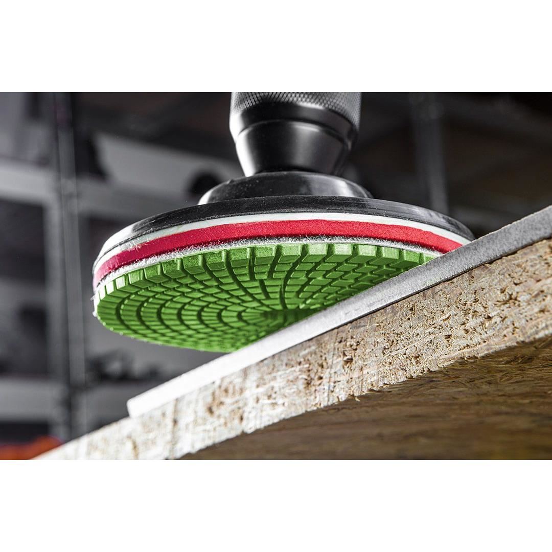 Az   hajlékonylemez gumitartóra van felszerelve, sarokcsiszolóval (flex) vagy fúrógéppel (fúrógép) használható.