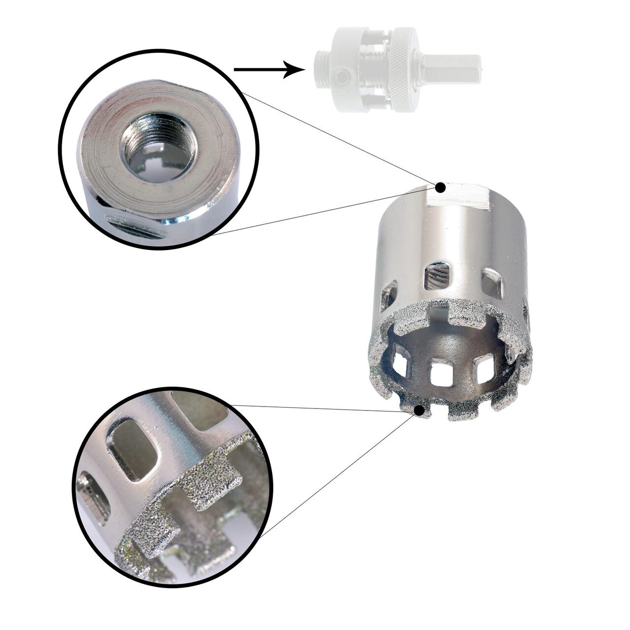 * A vákuumforrasztott gyémánt magokkal TISZTA és PONTOS lyukat készíthet törött élek nélkül.