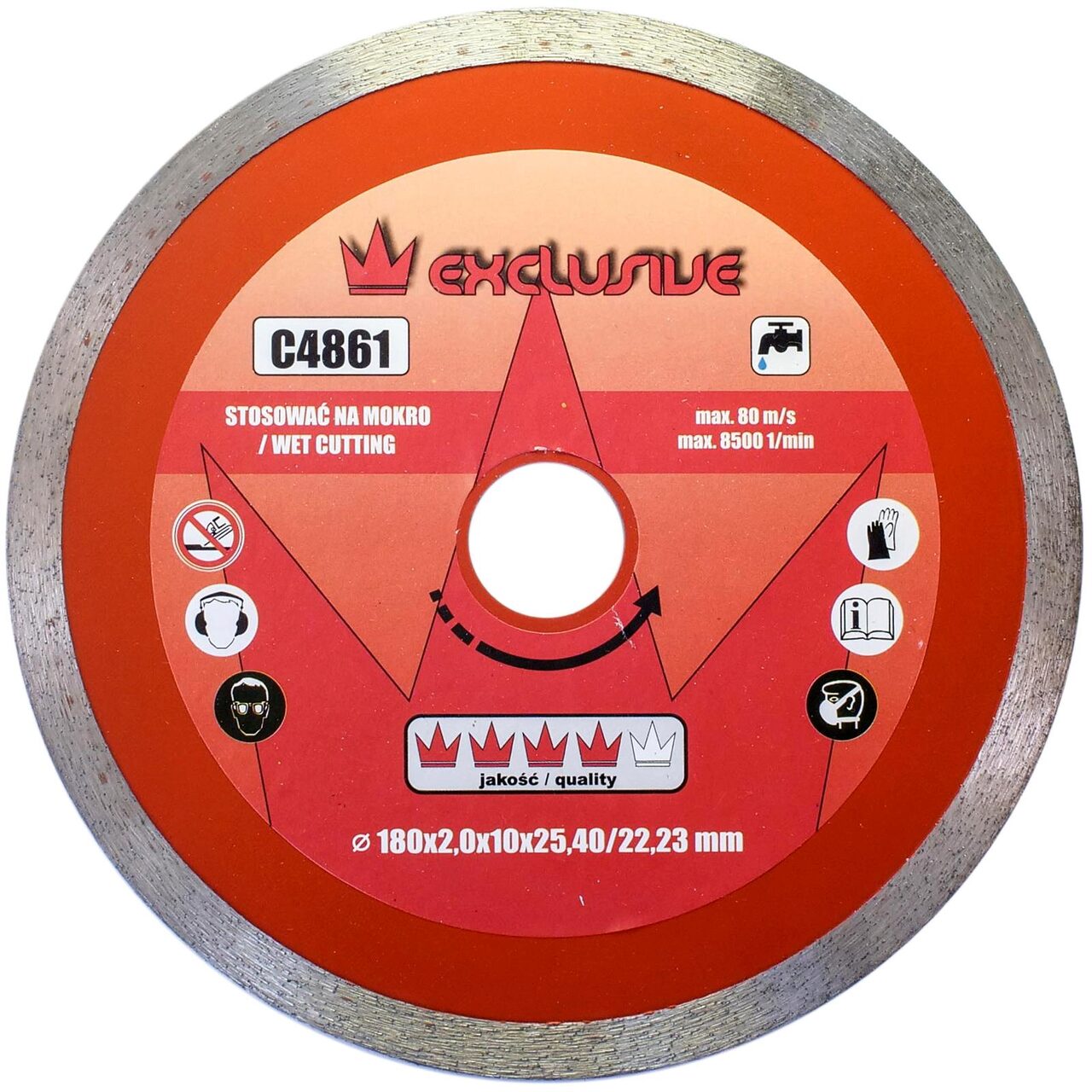 Acest disc diamantat continuu 180x25,4 mm RICHMANN EXCLUSIVE respecta standardul european de siguranta EN 13236.