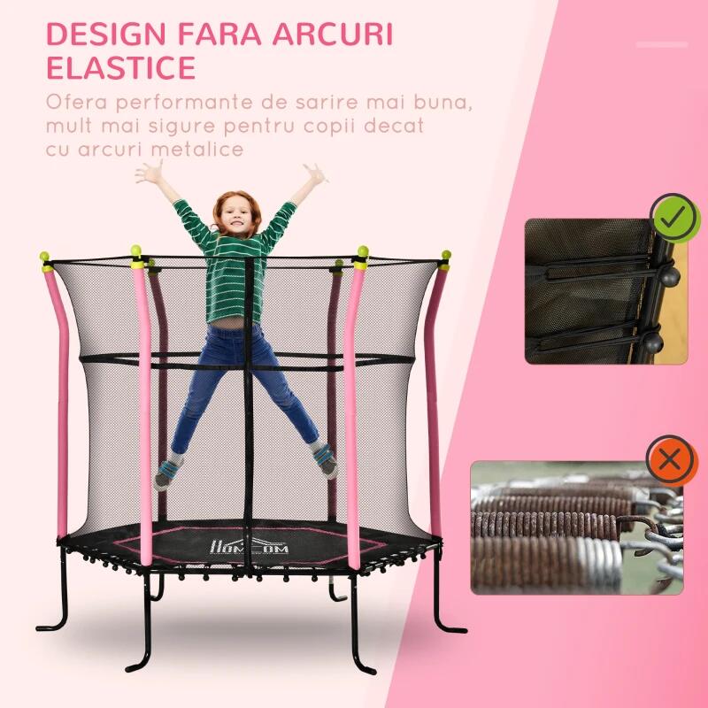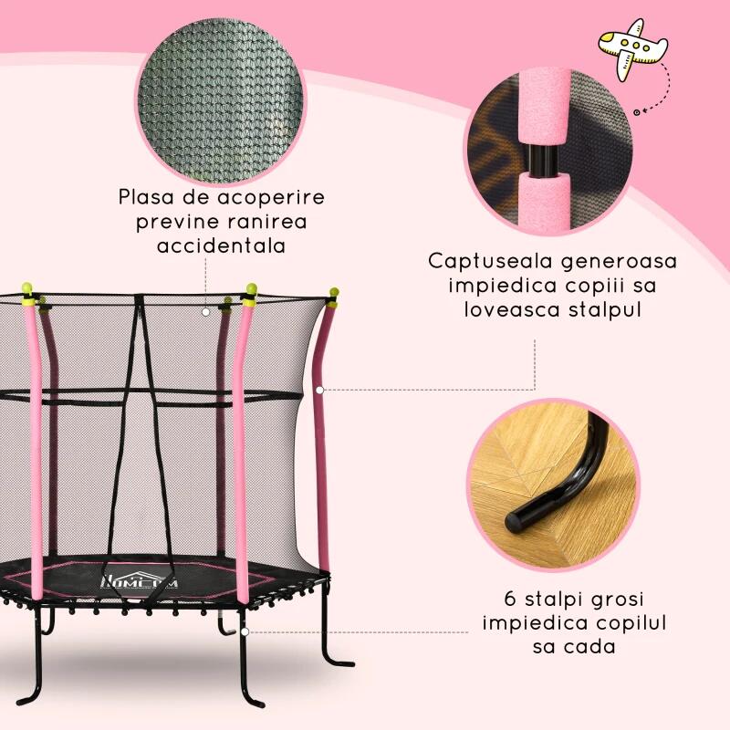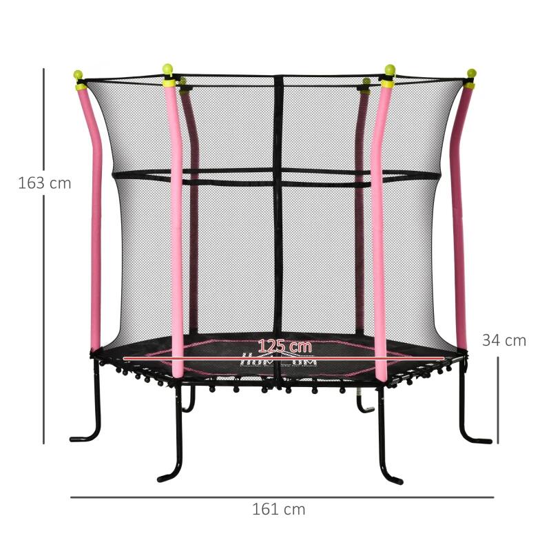 Gyerek trambulin 3-10 éves korig, 161x163 cm, védőhálóval, fekete és rózsaszín, max 60 kg