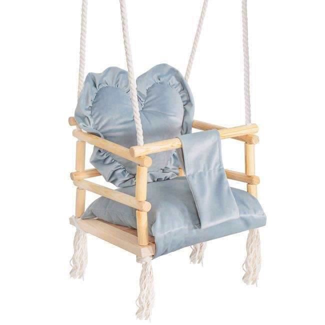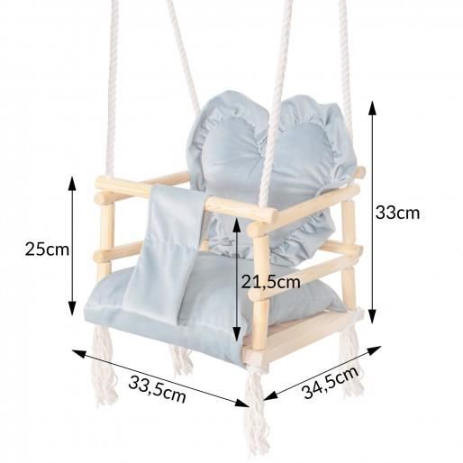 Gyerekhinta, fa, világoskék szívpárna, 33,4x34,5x25 cm, Springos