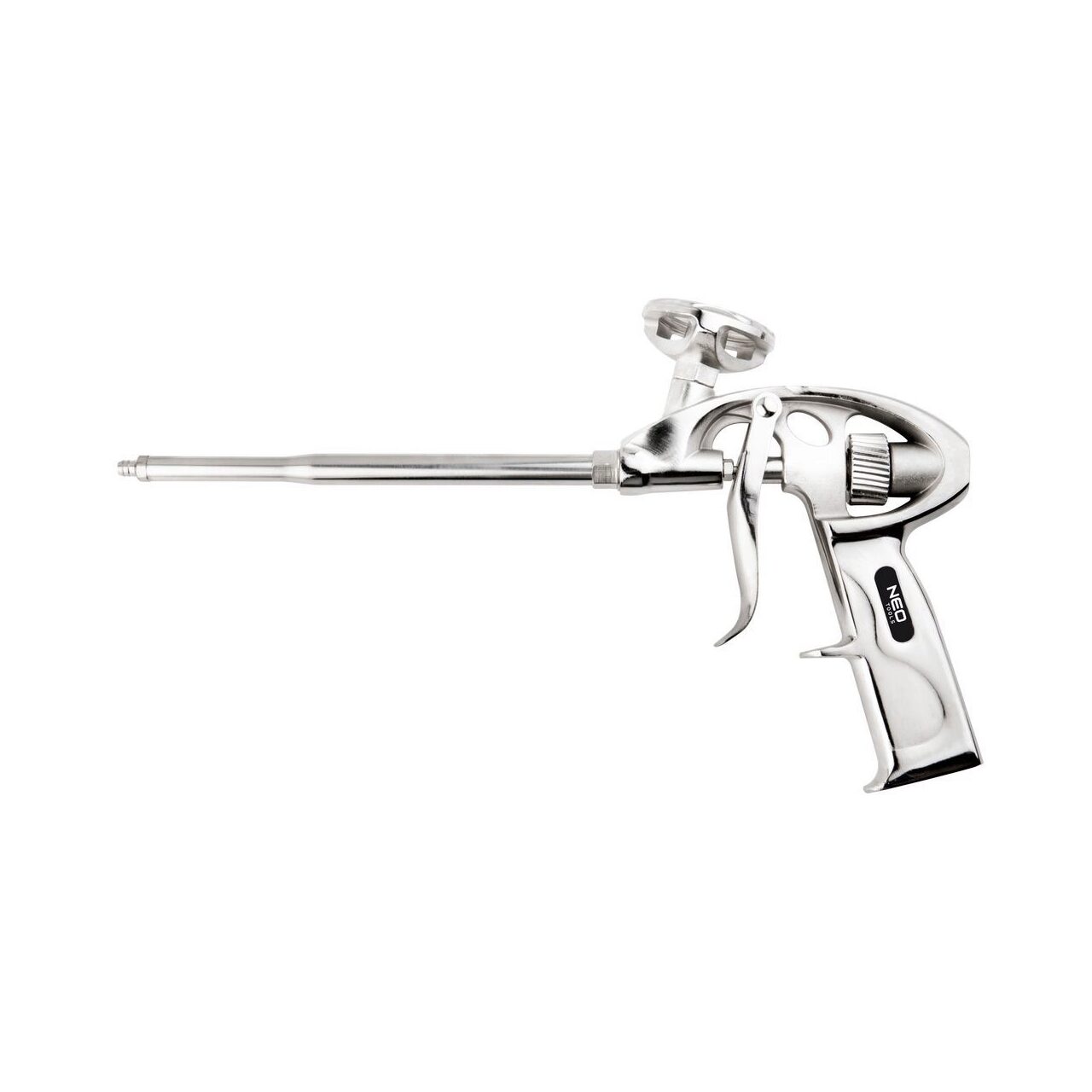 NEO szerelőhab pisztoly. A PTFE gömbfej és a PDFE bevonatú rozsdamentes tű megakadályozza a szivárgást munka közben. A robusztus kerékfogantyú lehetővé teszi a nyomás egykezes beállítását...