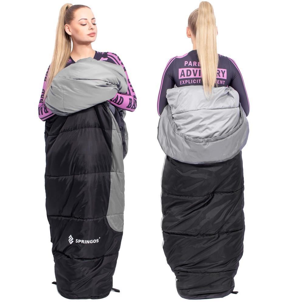 Hálózsák, turista, fekete-szürke, 220x50 / 80 cm, Springos