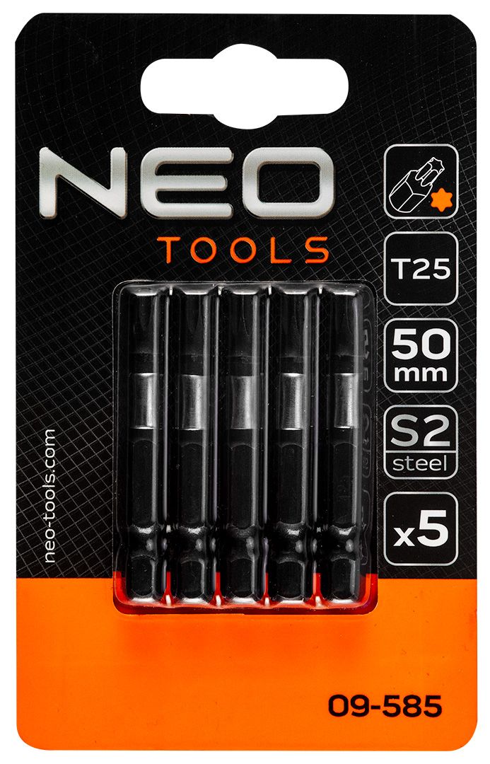 Tipp, bit, ütközőkészlet, Torx, 1/4" ;, 5 db, T25x50 mm, Neo