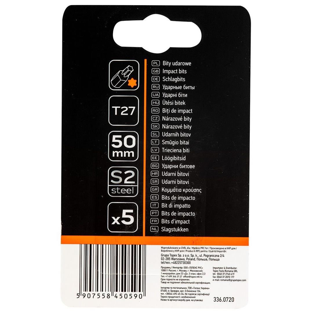 Tippkészlet, bitek, ütve, Torx, 1/4" ;, 5 db, T27x50 mm, Neo