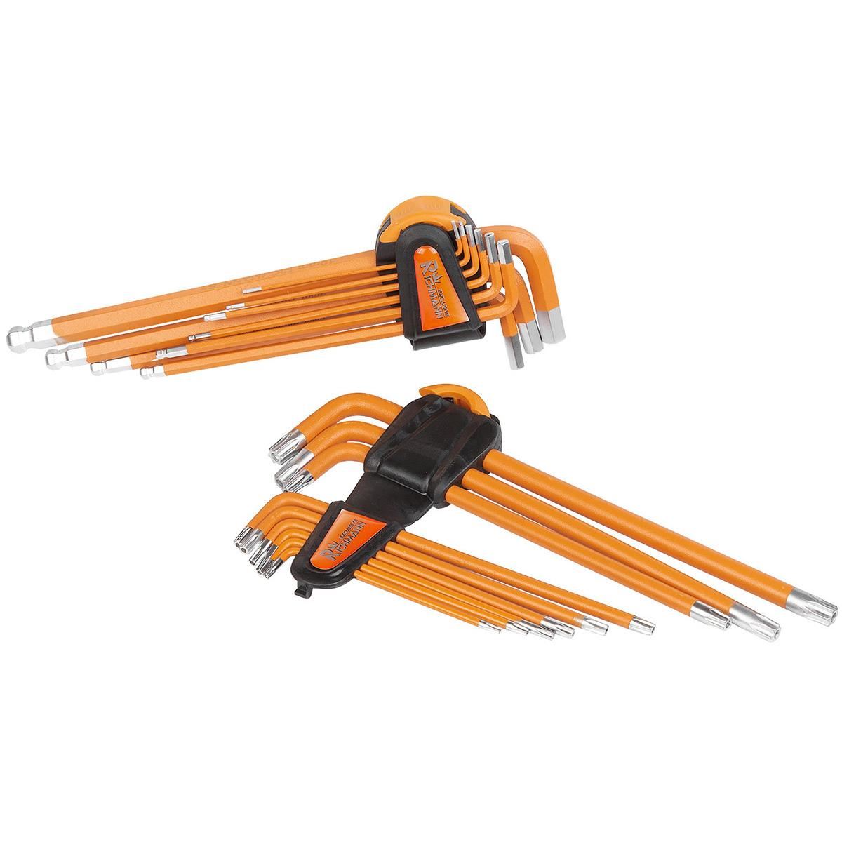 A készlet 18 db (TORX és HEX) kulcsot tartalmaz, mágneses hegyű, kiváló minőségű anyagból, S2 acélból, profik számára készült.