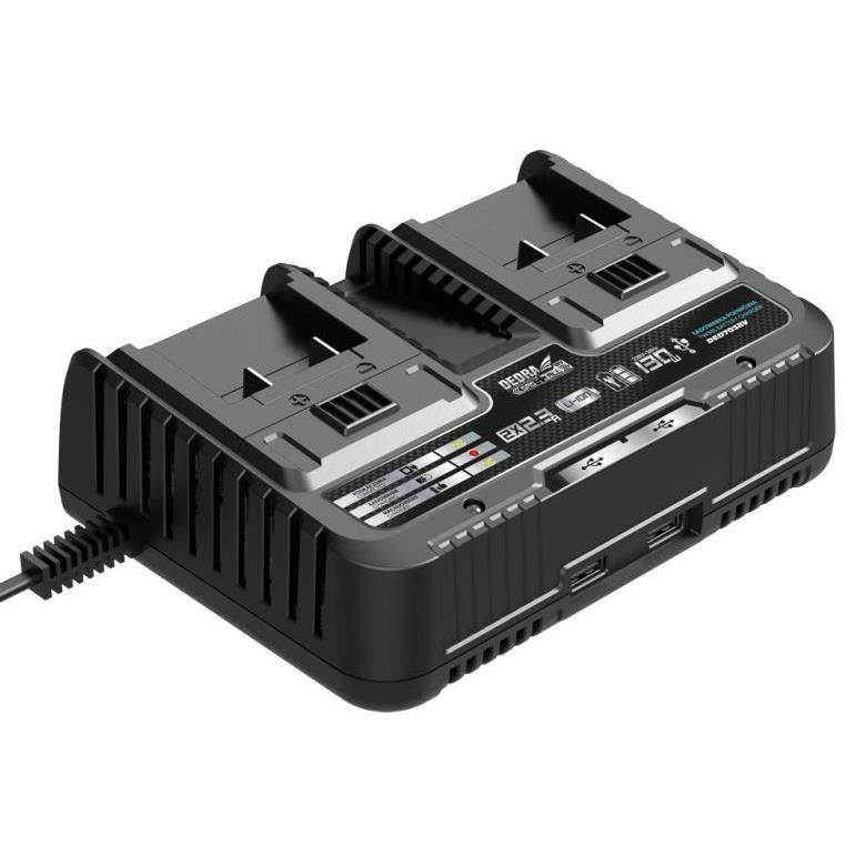- 1 x kettős akkumulátortöltő, 18V, Li-ion, 2x2,3A, SAS + ALL, Dedra