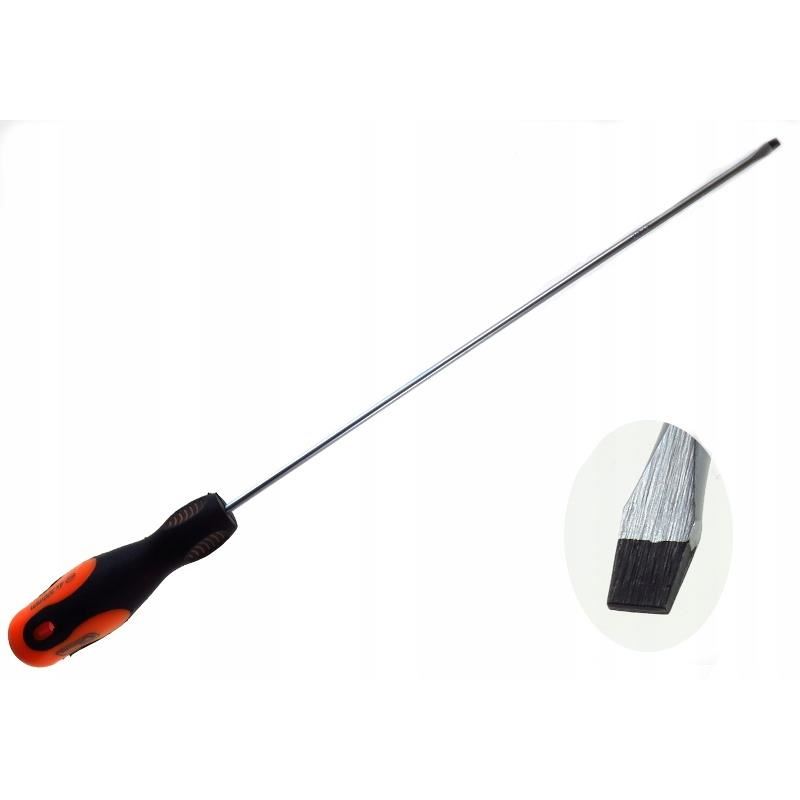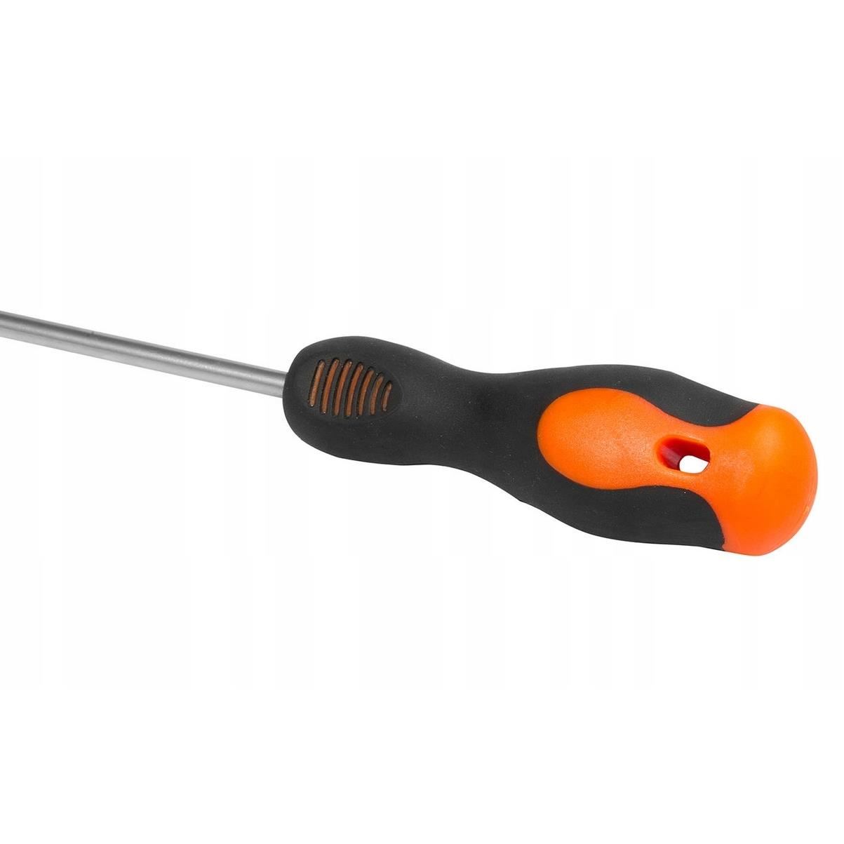Hosszú, egyenes csavarhúzó mágneses heggyel, króm-molibdénből, ergonomikus fogantyúval  -ből; gumi