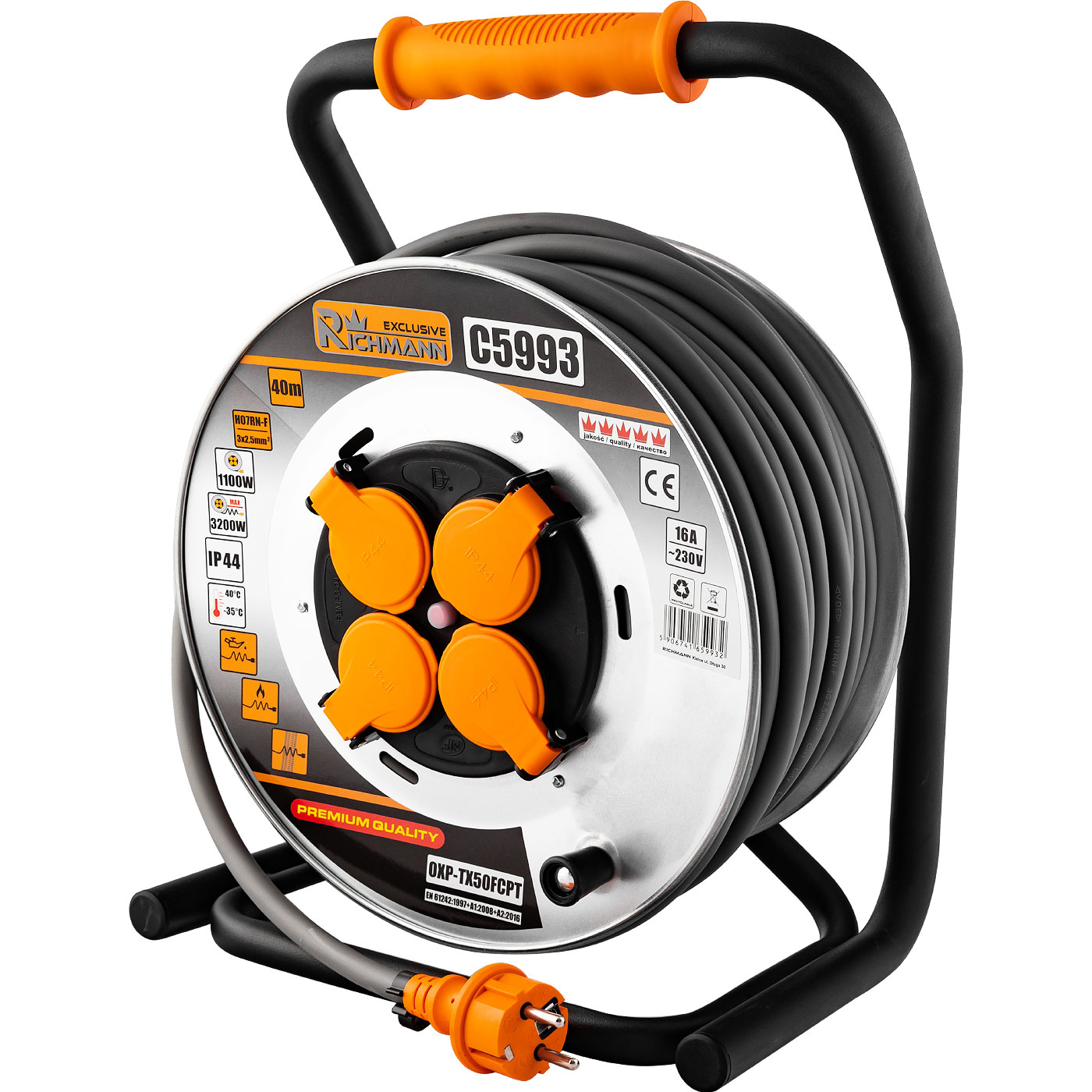 Richmann Exclusive 4 konnektoros ipari elektromos tárcsás hosszabbító 40m,3x2,5 IP44