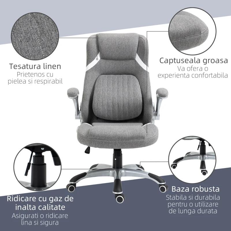 Irodai szék deréktámasszal, állítható háttámlával, forgatható, poliészter, szürke, max 120 kg, 68x76x109-117 cm