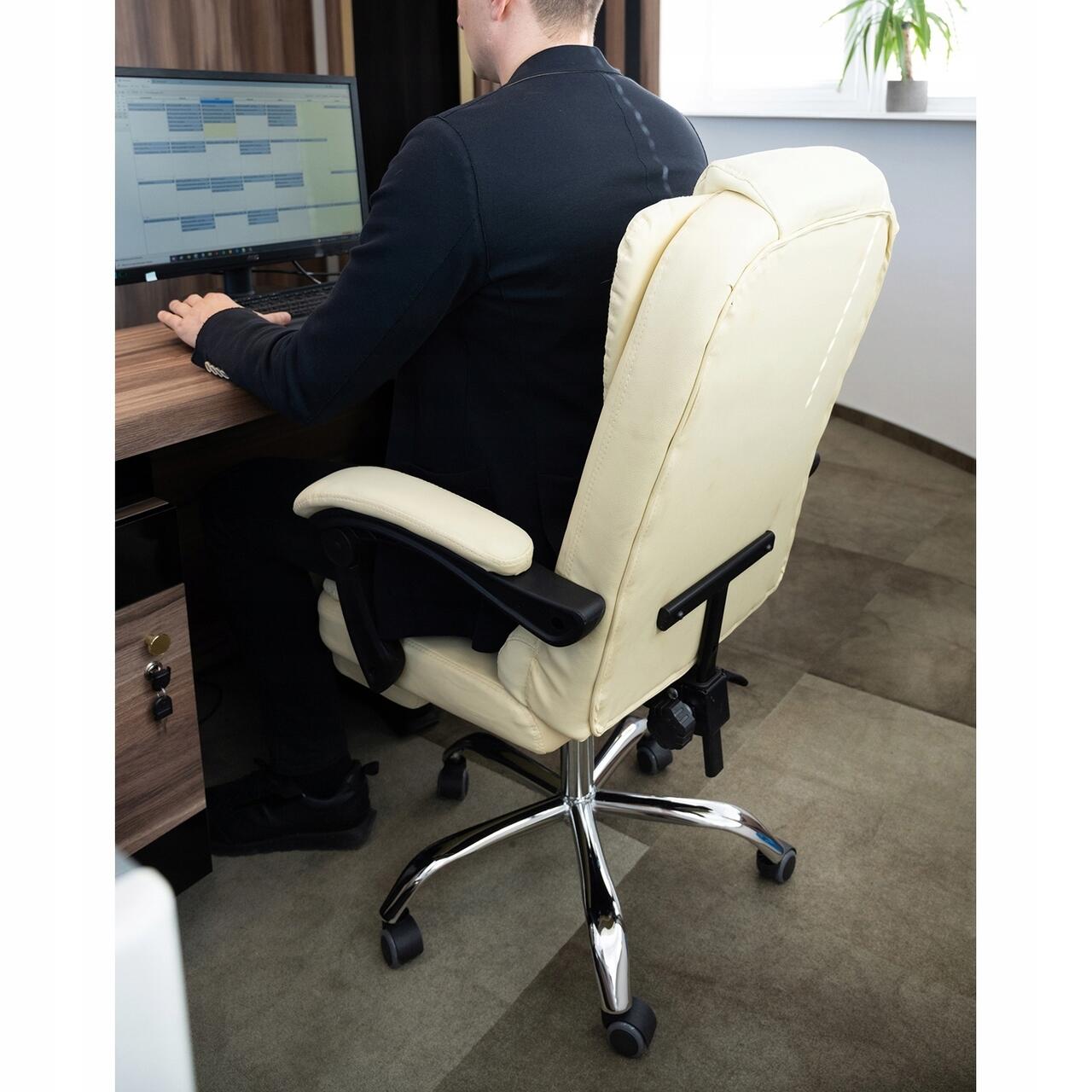 Irodai szék, Malatec, lábtartóval, forgatható, ökológiai bőr, krém, 65x102/110 cm