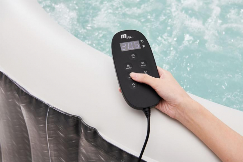 - Nem fogsz küzdeni a medence fizikai duzzadásával! Csak nyomja meg a távirányító gombját, és a pezsgőfürdő 3 perc alatt felfújja magát.