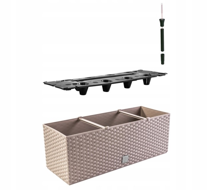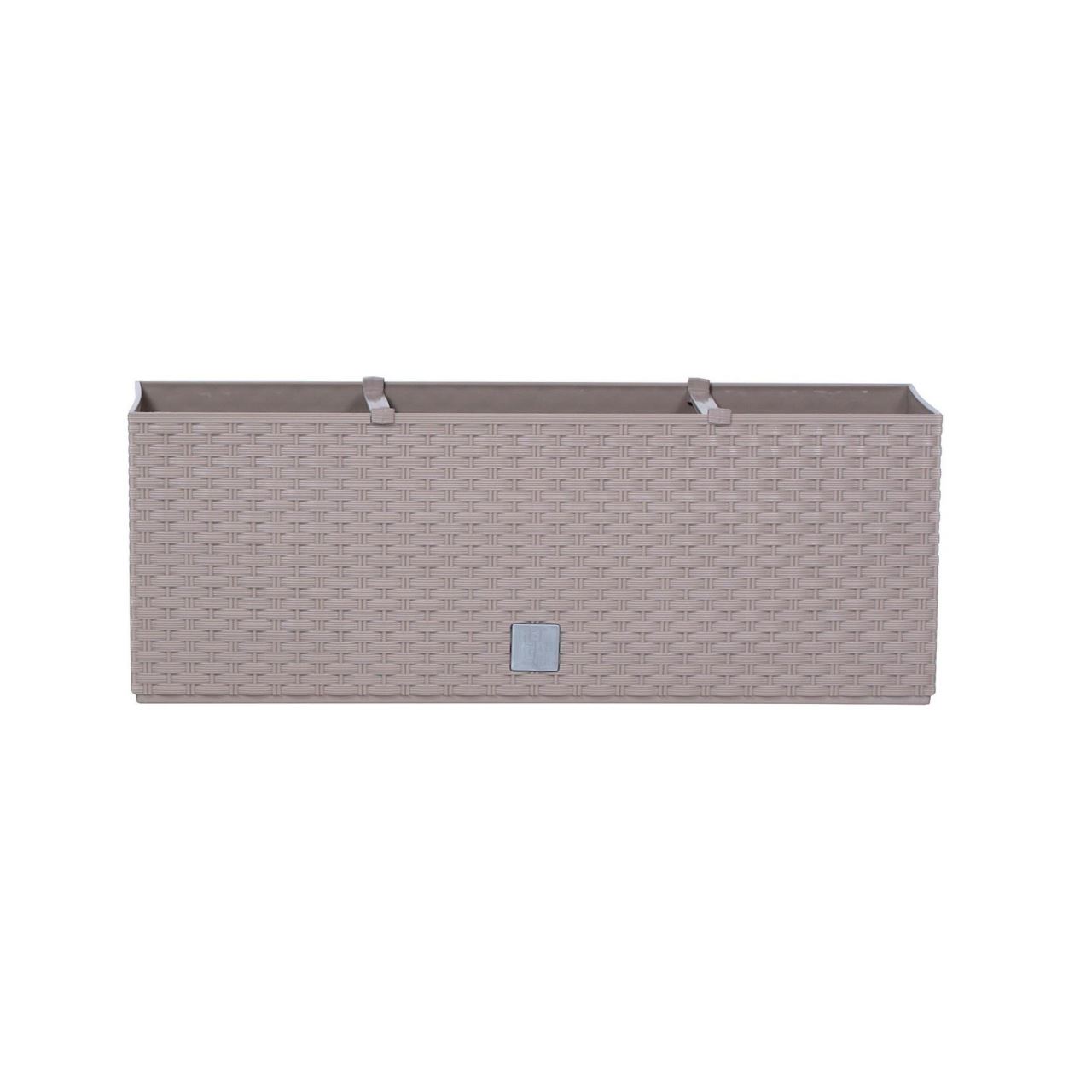 Dekoratív virágtartó, öntözőrendszer, rattan utánzat, barna, 30 L, 60x25x24 cm, Rato Case
