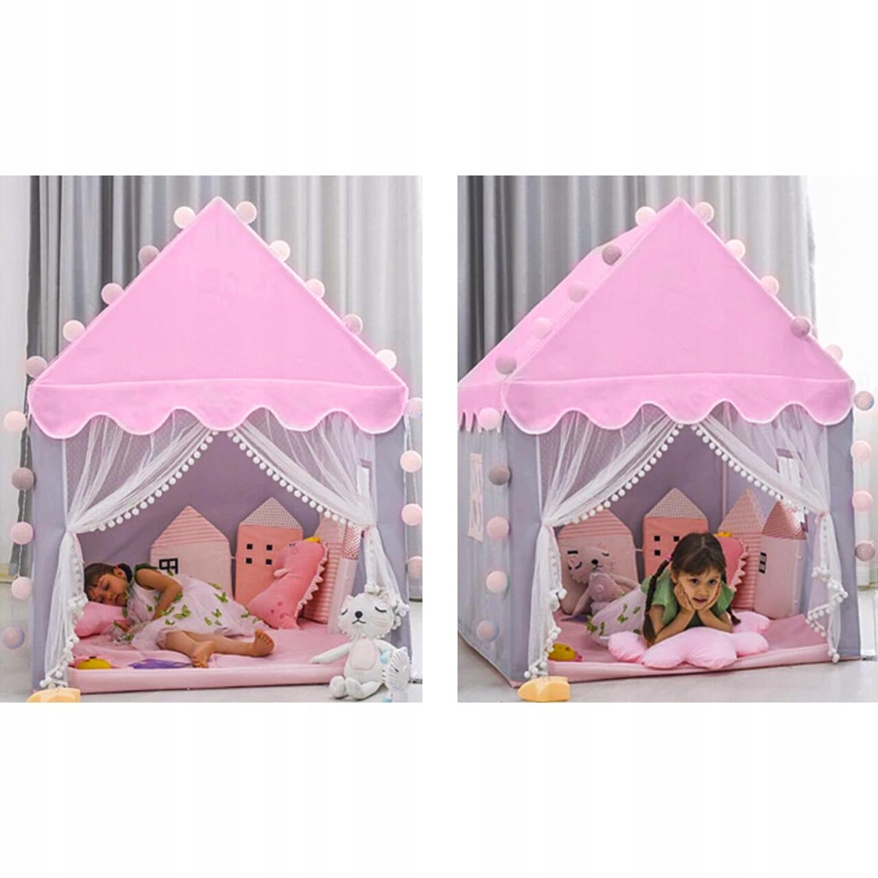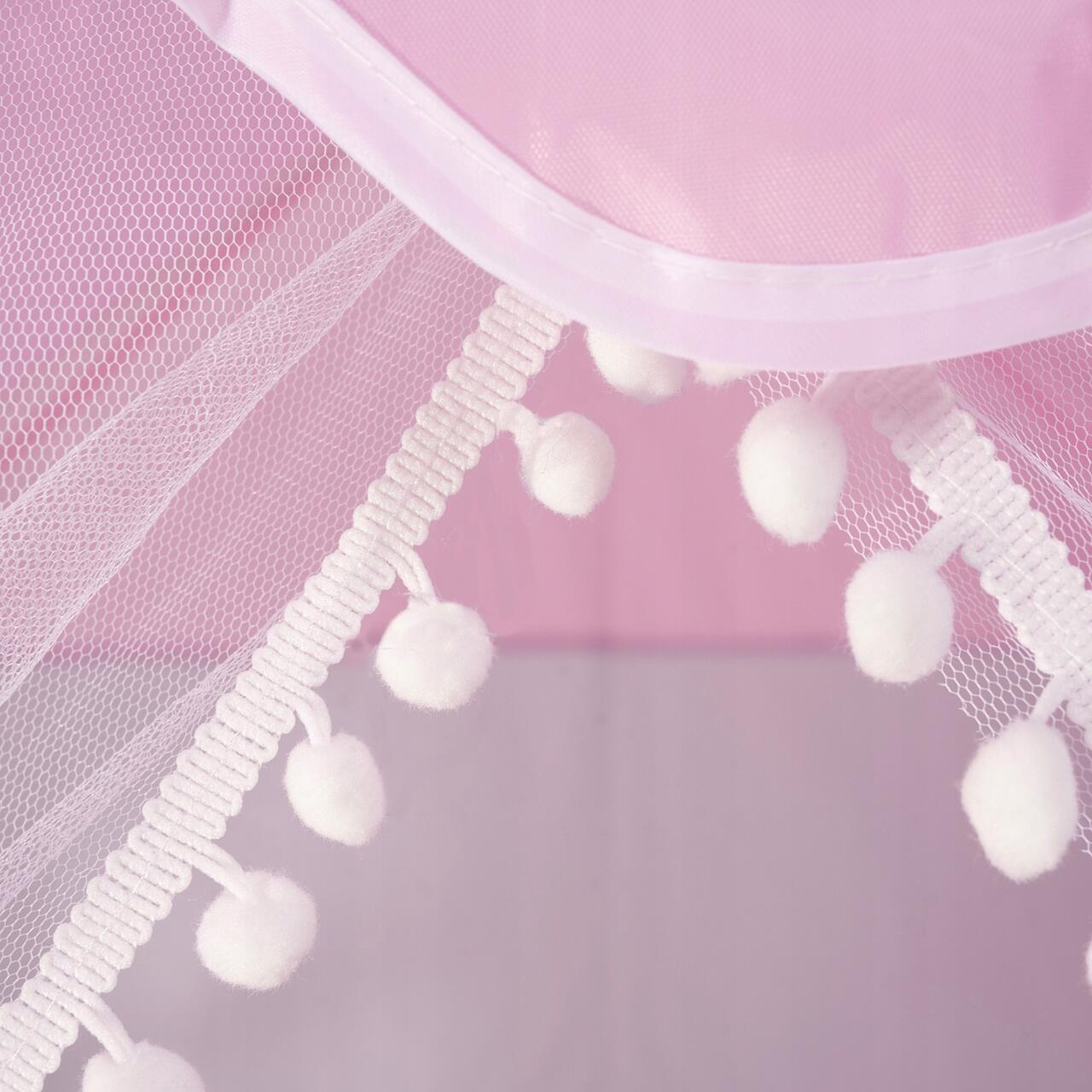 Játszósátor gyerekeknek, Kruzzel, kerek lámpákkal, rózsaszín és fehér, 100x115x130 cm