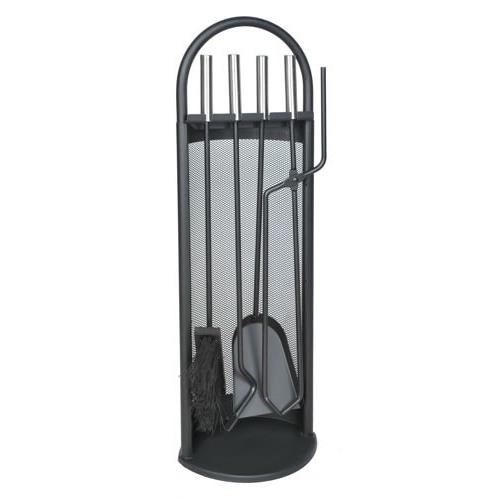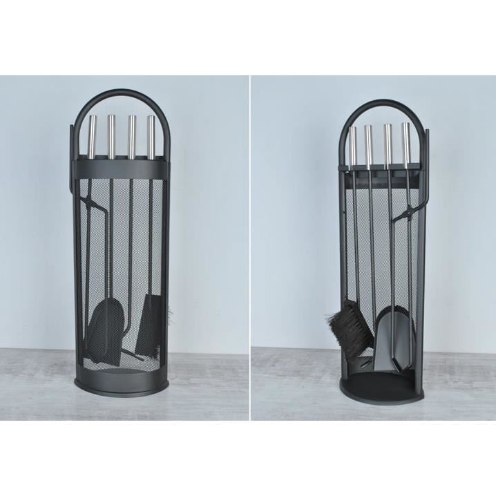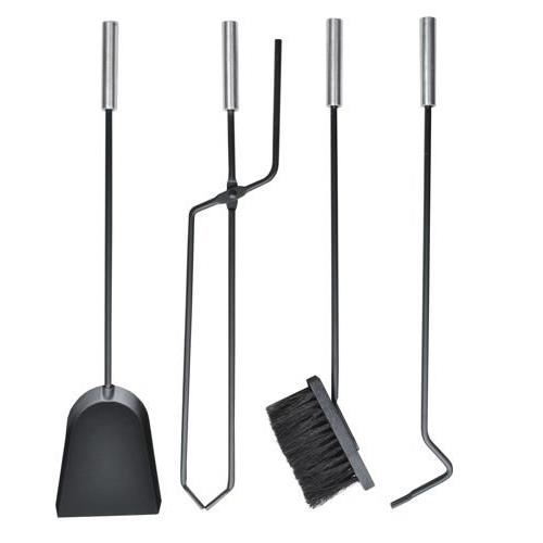 Kandalló kiegészítő készlet, 4 részes állvány, acél, fekete, 22x66 cm