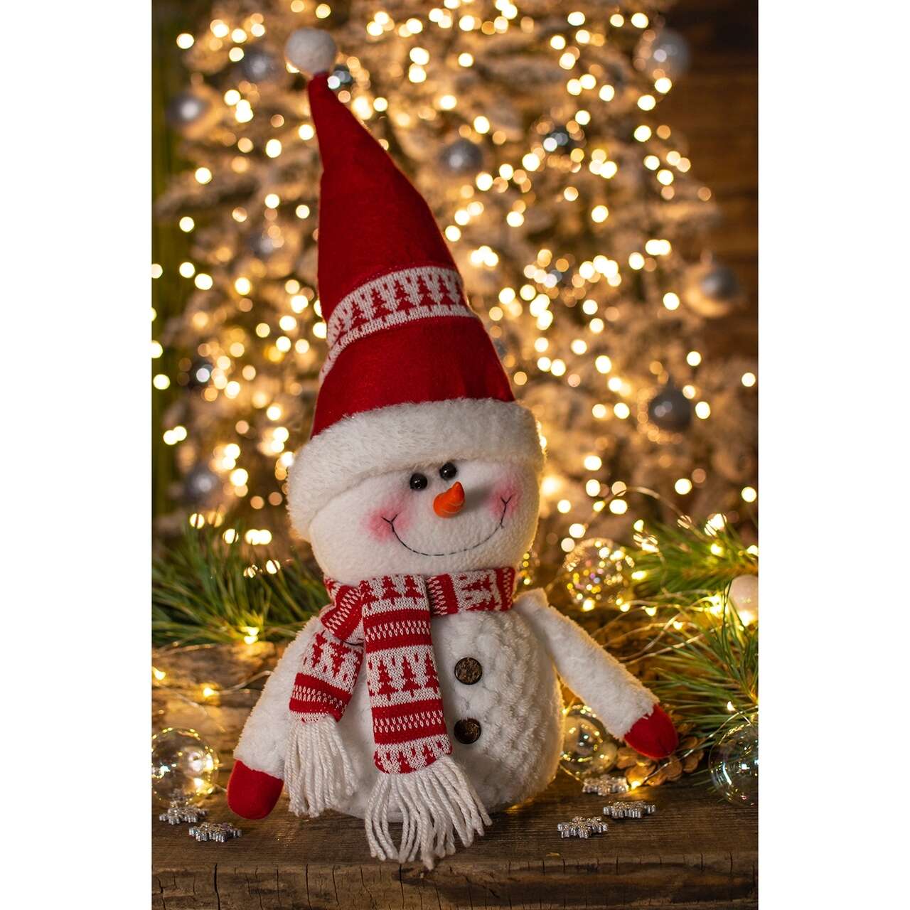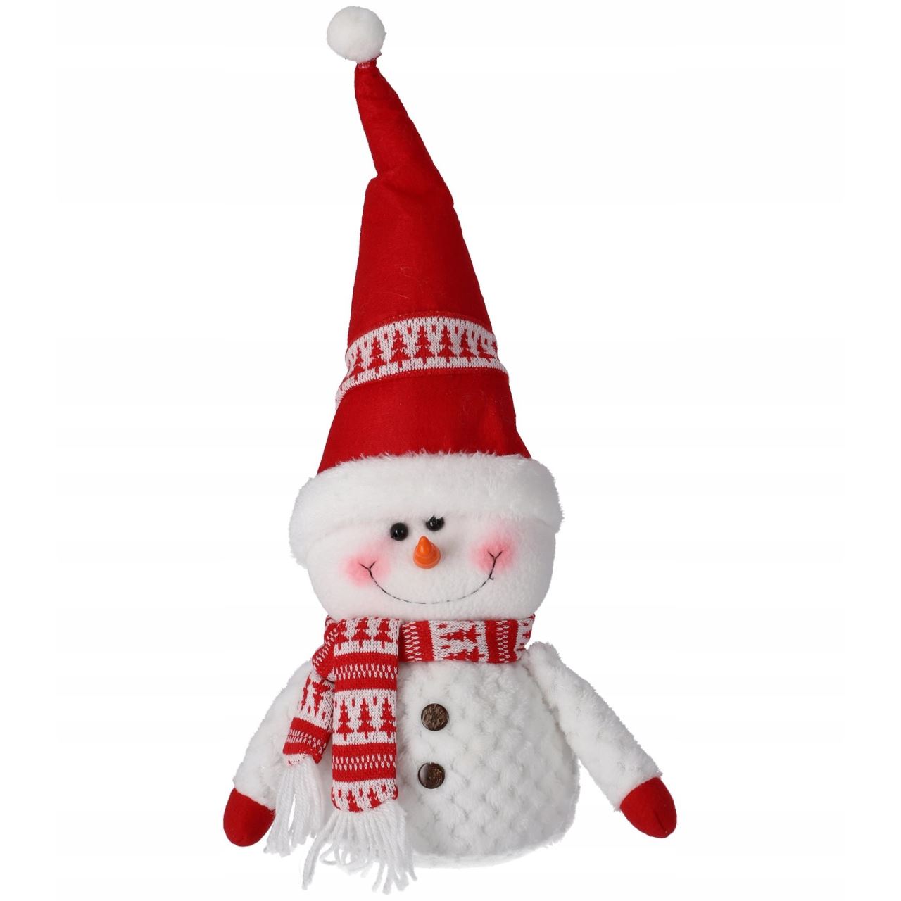 Karácsonyi dekoráció, hóember sállal, piros, 17x49 cm, Jumi