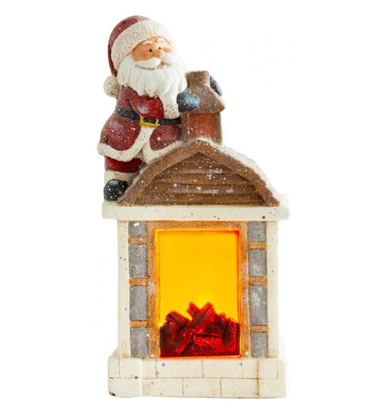 Karácsonyi dekoráció, kerámia, Mikulás kandallóval, LED, 3xAA, 27,5x19x51 cm