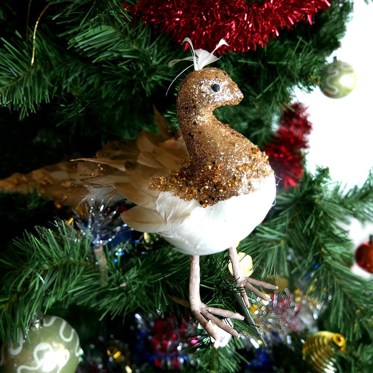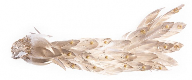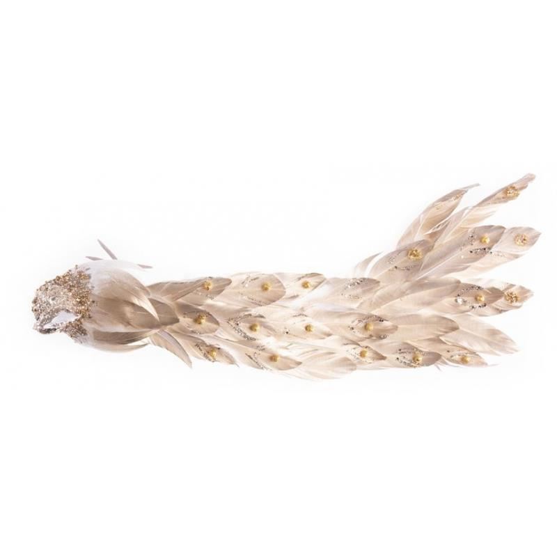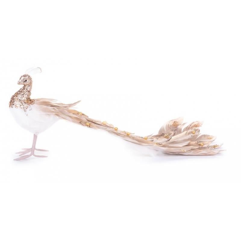 Karácsonyi dekoráció, páva, arany és fehér, 50x20x23 cm