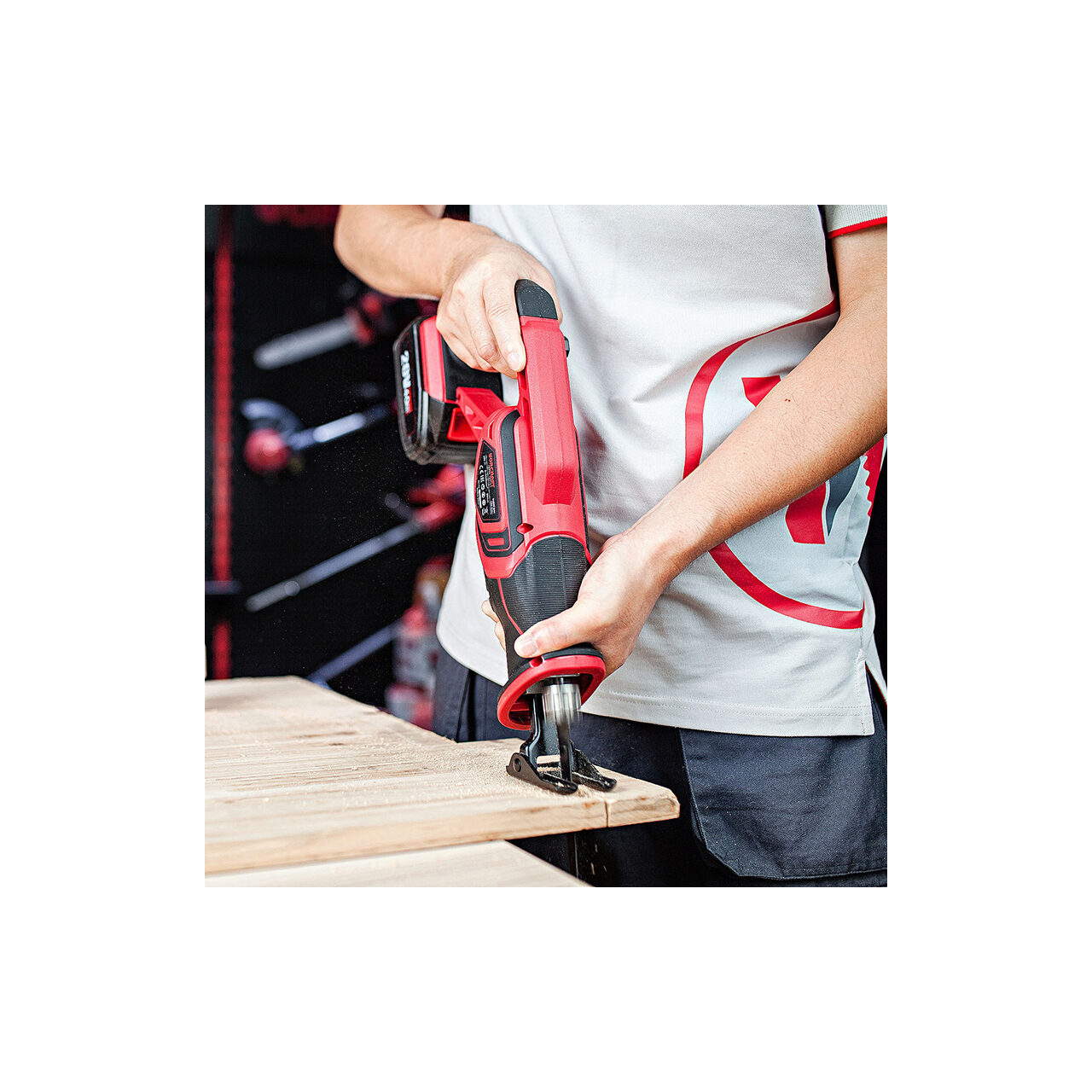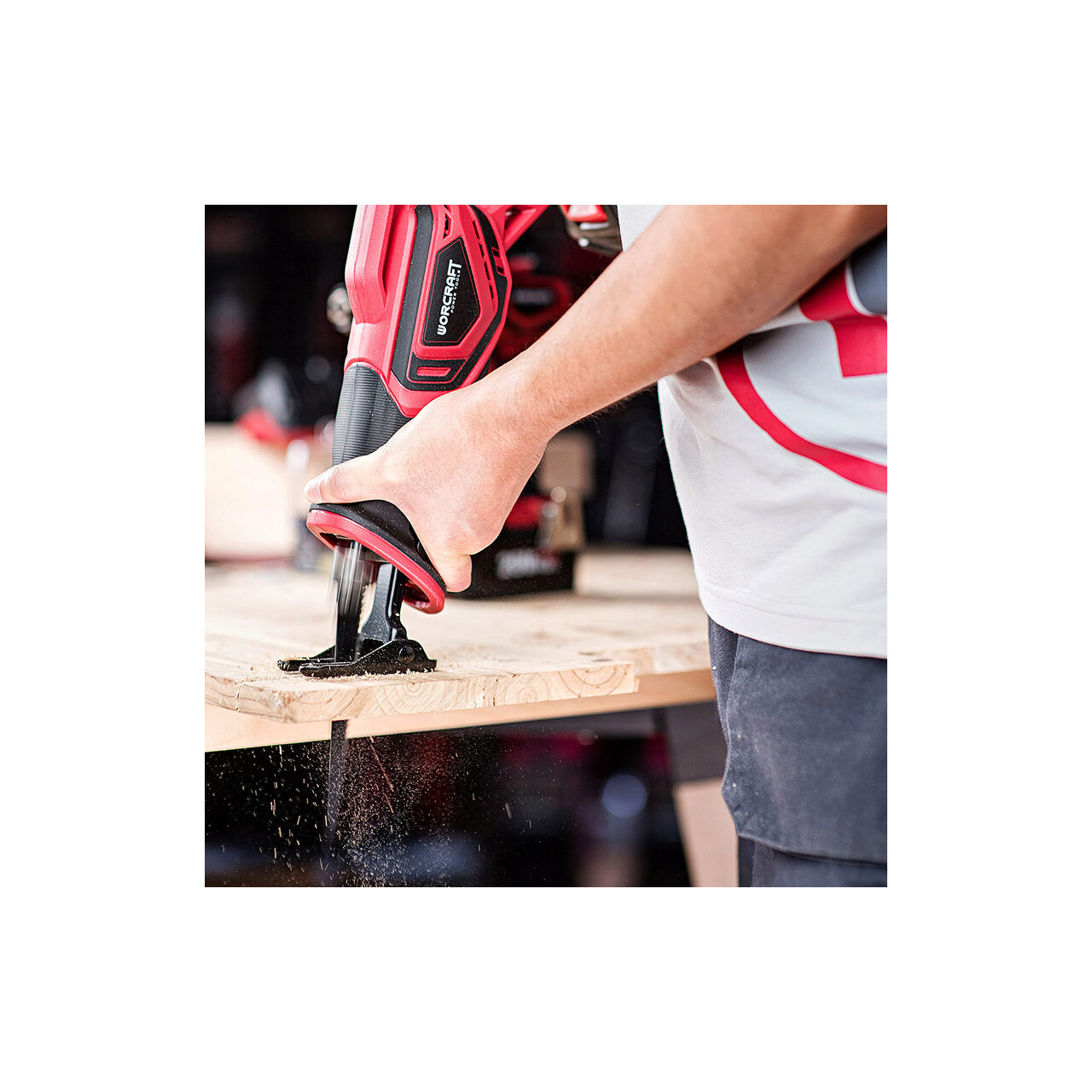 kard típusú fűrész 20 V-os akkumulátorral, 4 Ah, WORCRAFT Olyan anyagok vágására használják, mint a fa, fém, fém és rugalmas bimetál.