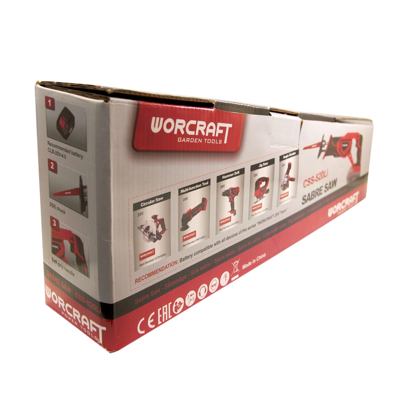 Kardfűrész, akkumulátorral, 20 V, 4,0 Ah-Li ion, töltő + ajándék szemüveg, kesztyű, WORCRAFT