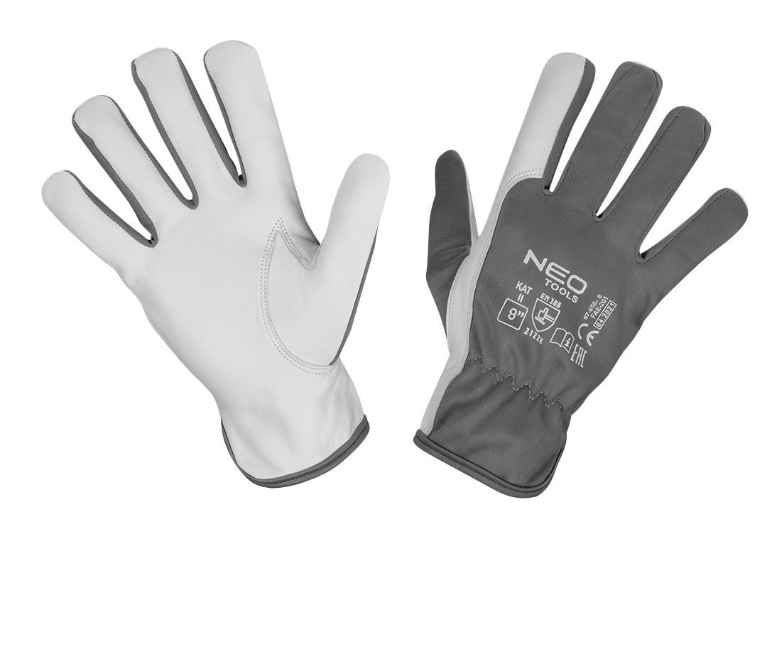 Kecskebőr kesztyű, szürke és fehér, 8", NEO méret
