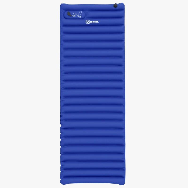 Kemping matrac, felfújható, beépített pumpával, vízálló, műanyag 190T, kék, 195x70x10 cm