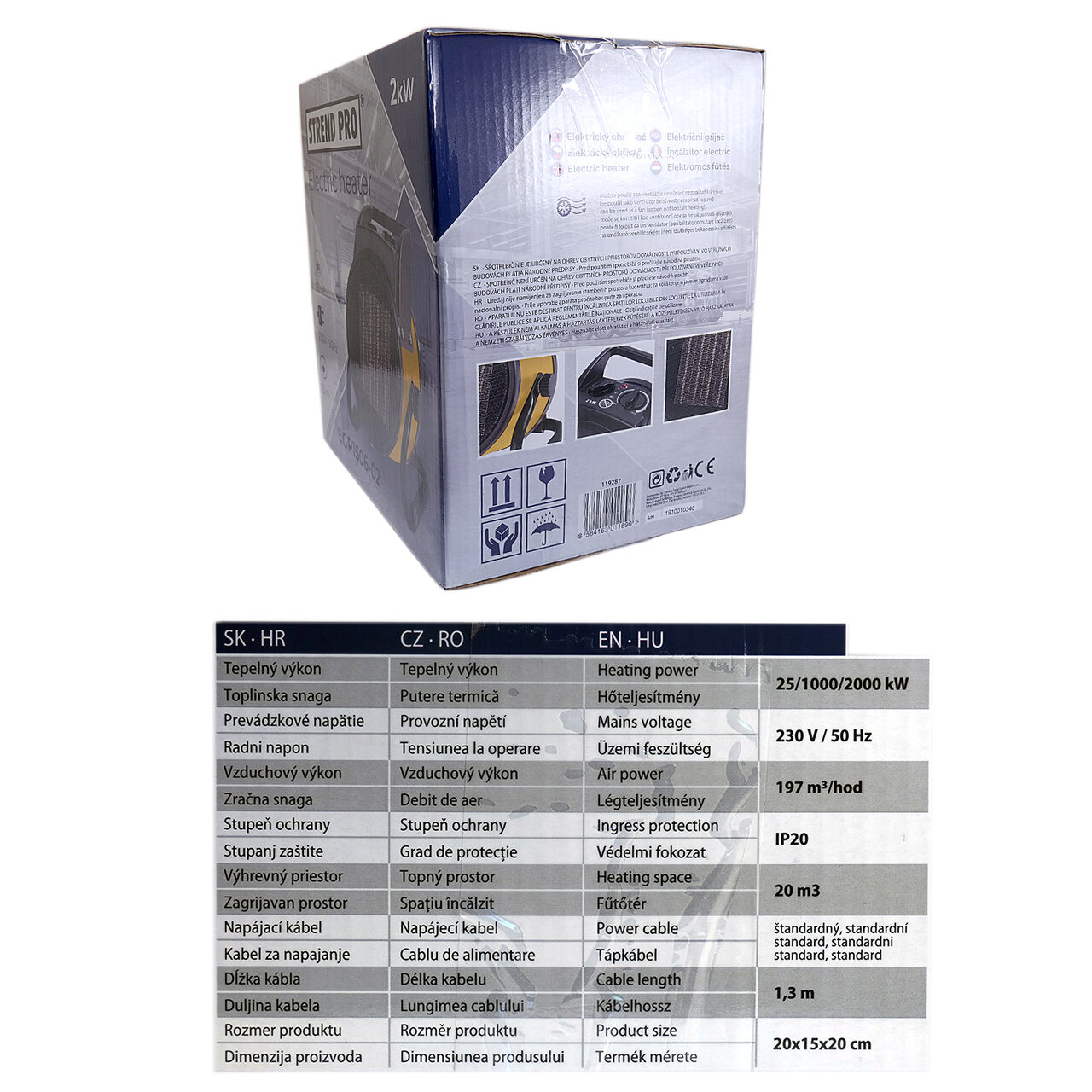 A 2000 W-os elektromos fűtés lehetővé teszi a hőteljesítmény beállítását (25 W, 1000 W és 2000 W).