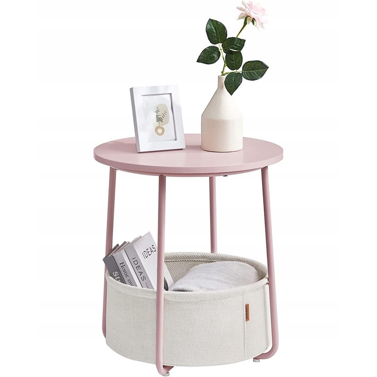 Kerek asztal tárolókosárral, halvány, acél talppal, rózsaszín és fehér, 45x50 cm, Artool