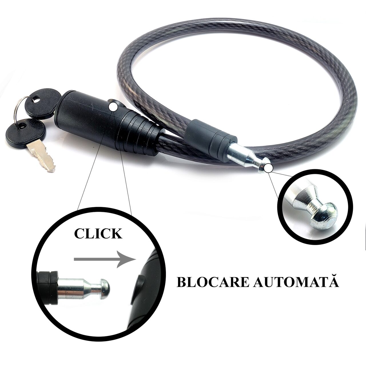 Kerékpár lopásgátló zár, PVC bevonatú acél kábel 12x650mm + 2 kulcs