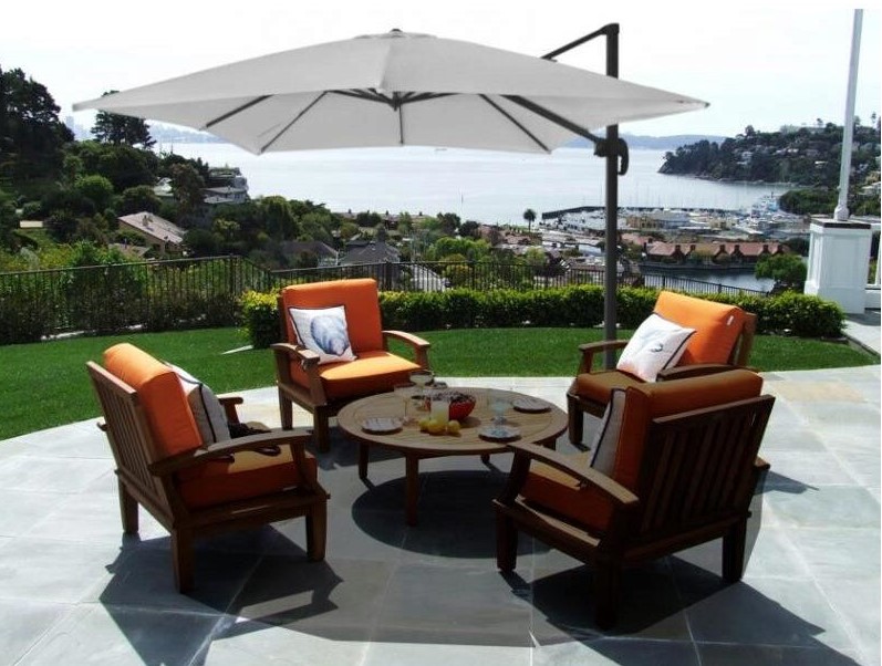Kerti esernyő/terasa va hűvösséget kínál forró nyári napokon és védelmet nyújt az eső ellen.