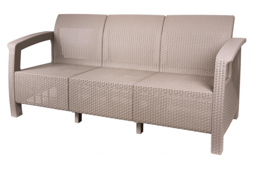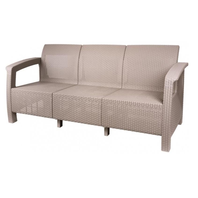 Kerti / terasz kanapé, 3 férőhelyes, cappuccino, szintetikus rattan, 175x70x80 cm, Aruba