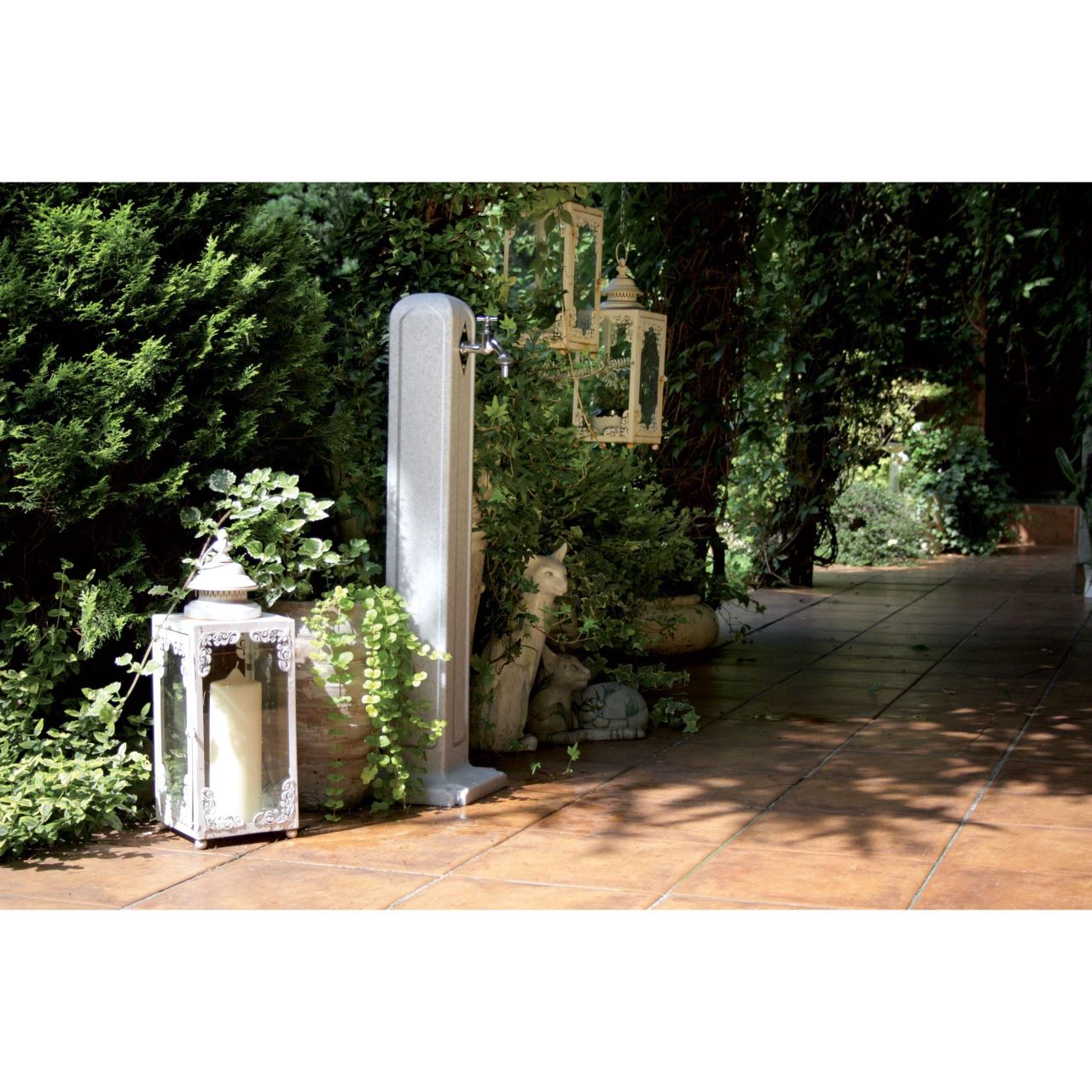 A kerti csaptelep maszk 90 cm magas, modern minimalista stílusban készült, kiváló dekorációs megoldásokat kínál a kert, a parkok és miért nem a város utcáinak tájképére.