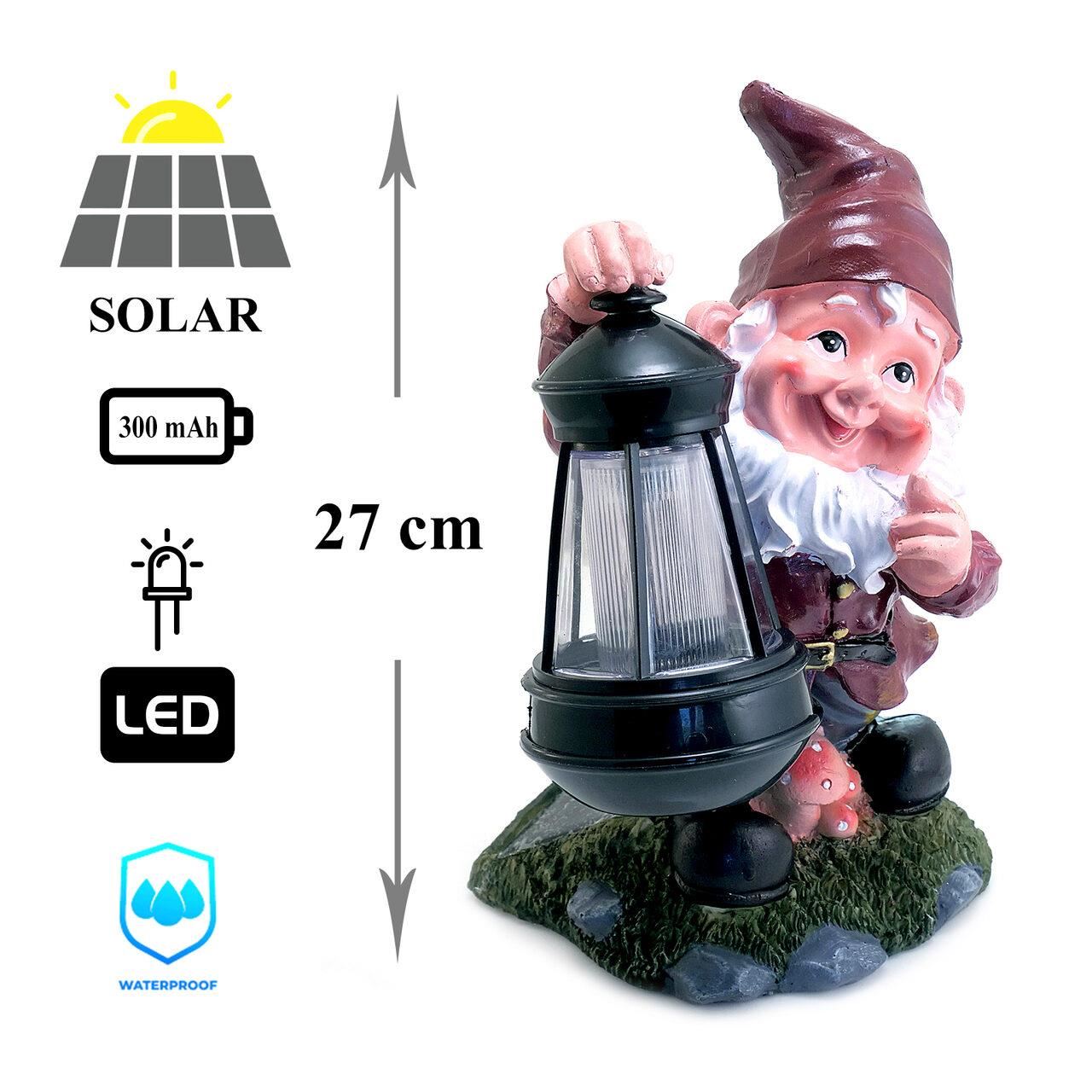 Kerti dekoráció, kerámia/műanyag, napelemes lámpa, törpe, 17x16x27 cm