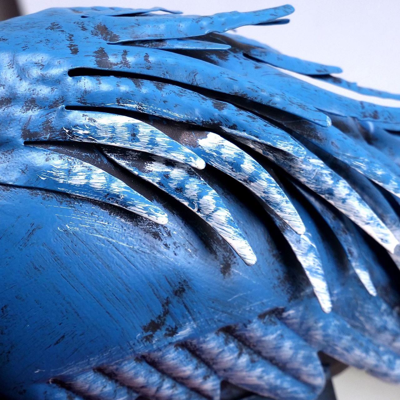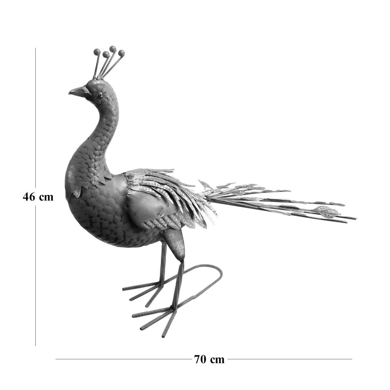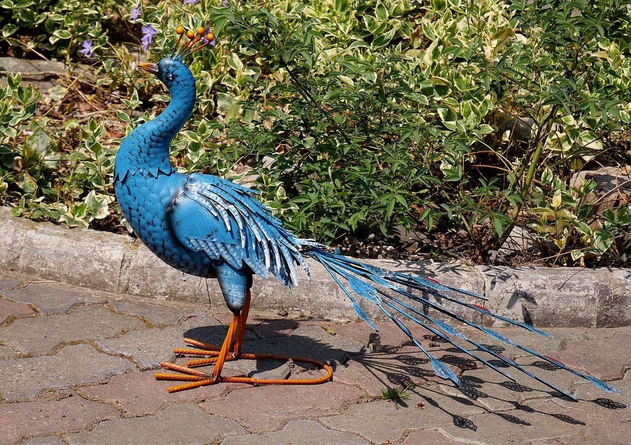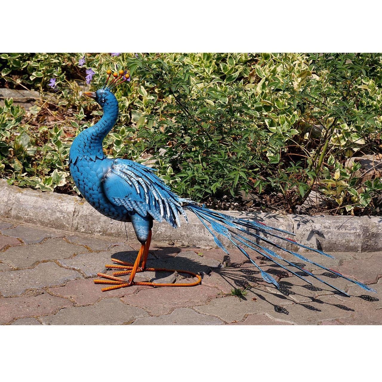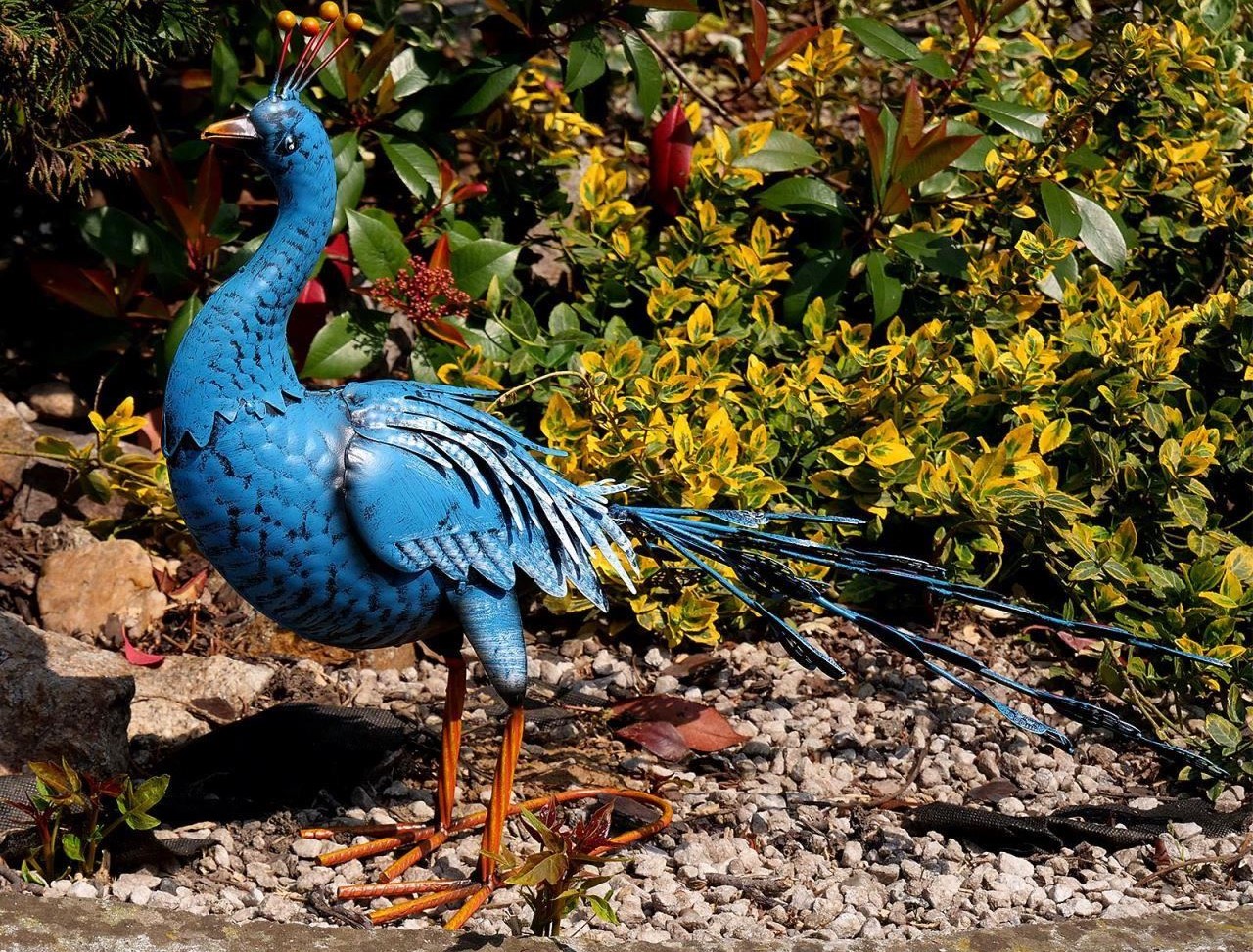 Kerti dekoráció, metál, kék páva, 23x70x46 cm