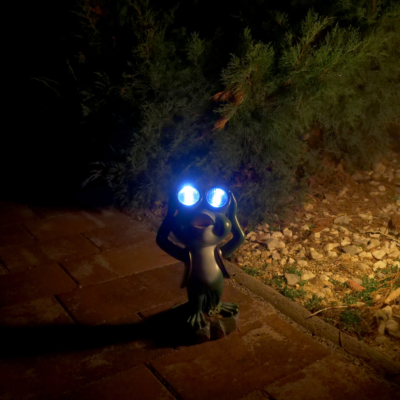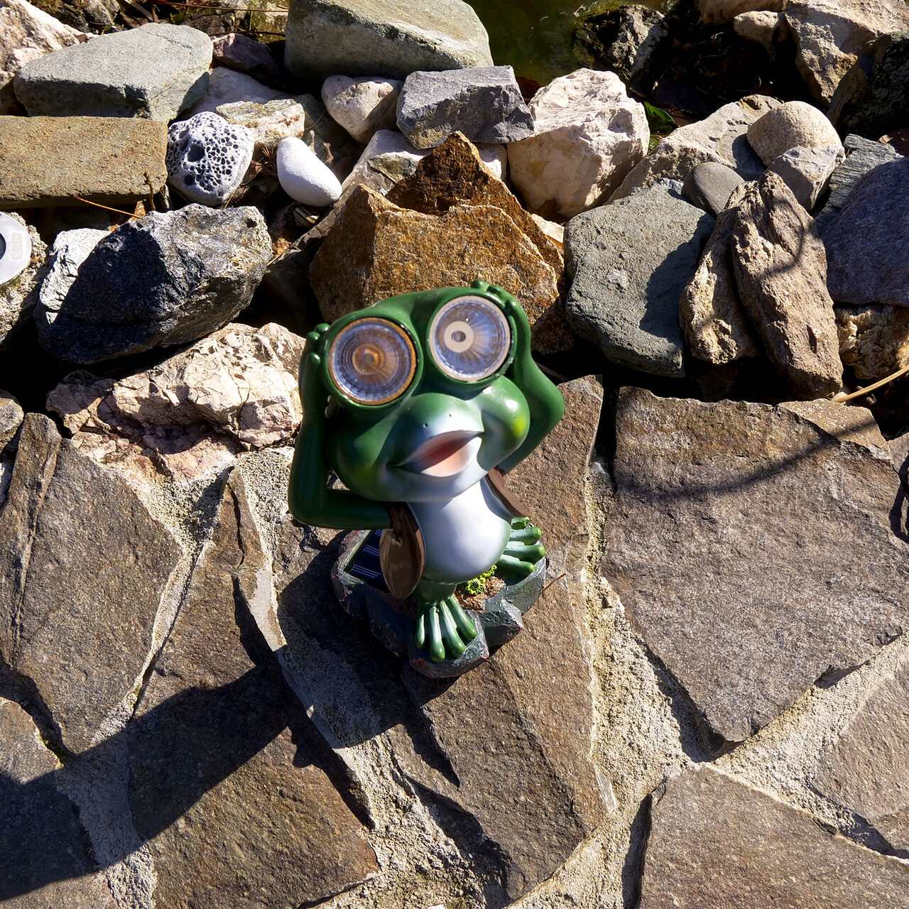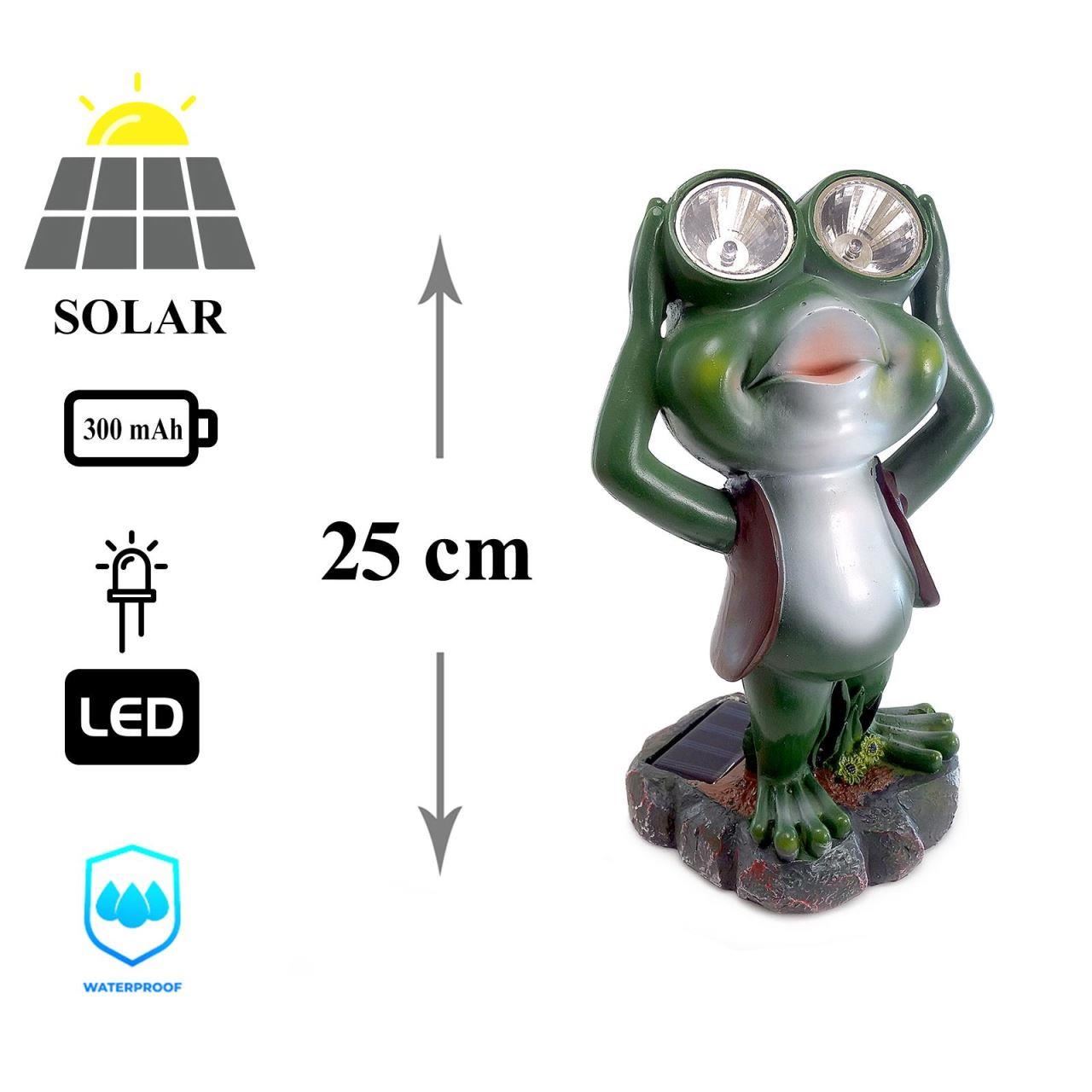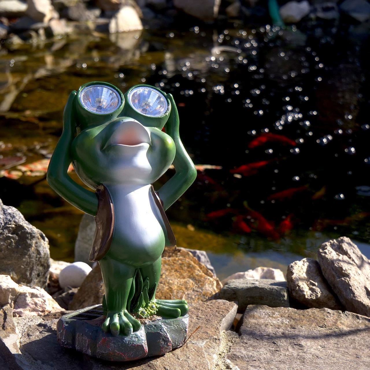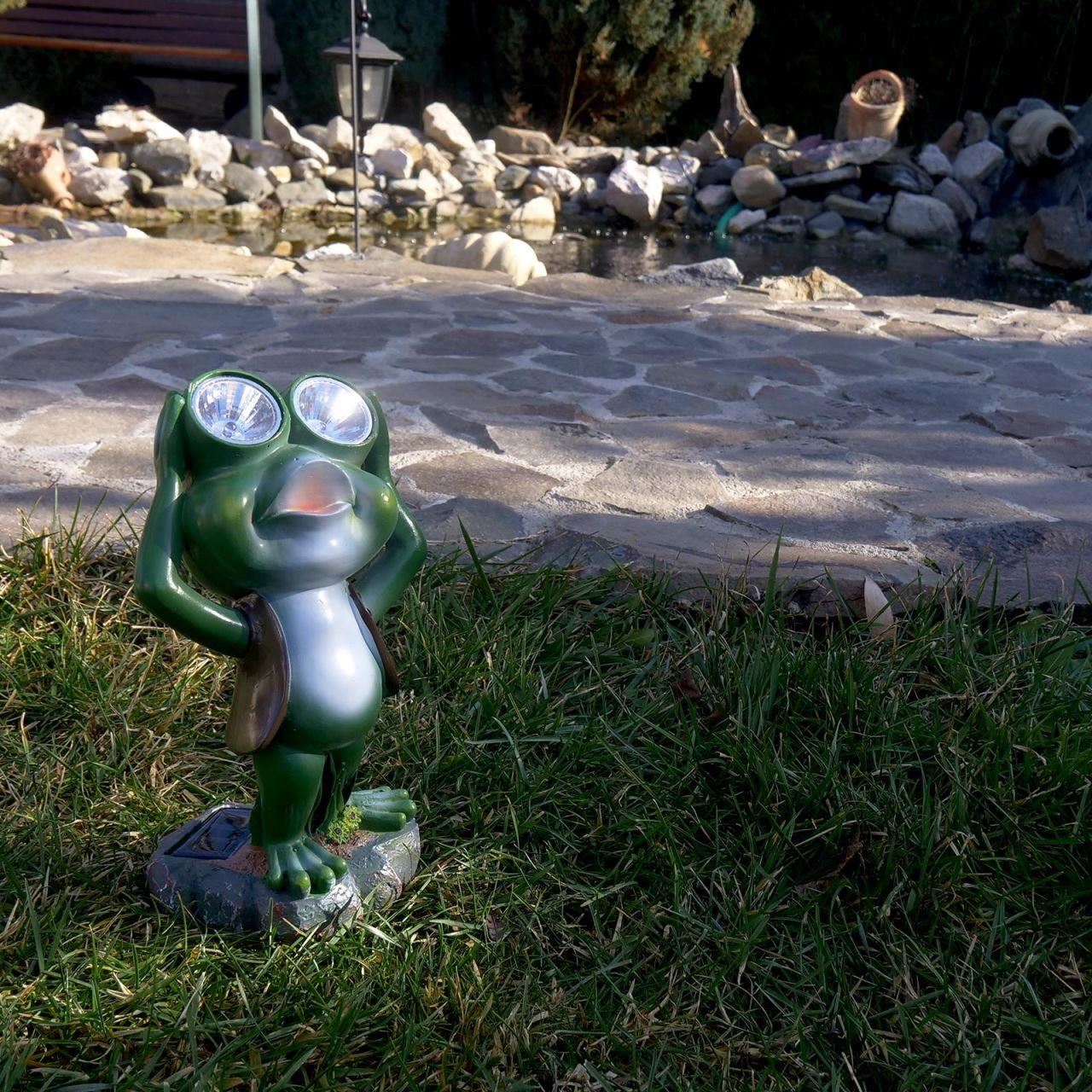 Kerti dekoráció, polirezin, napelemes lámpa, béka, 14x12x25 cm