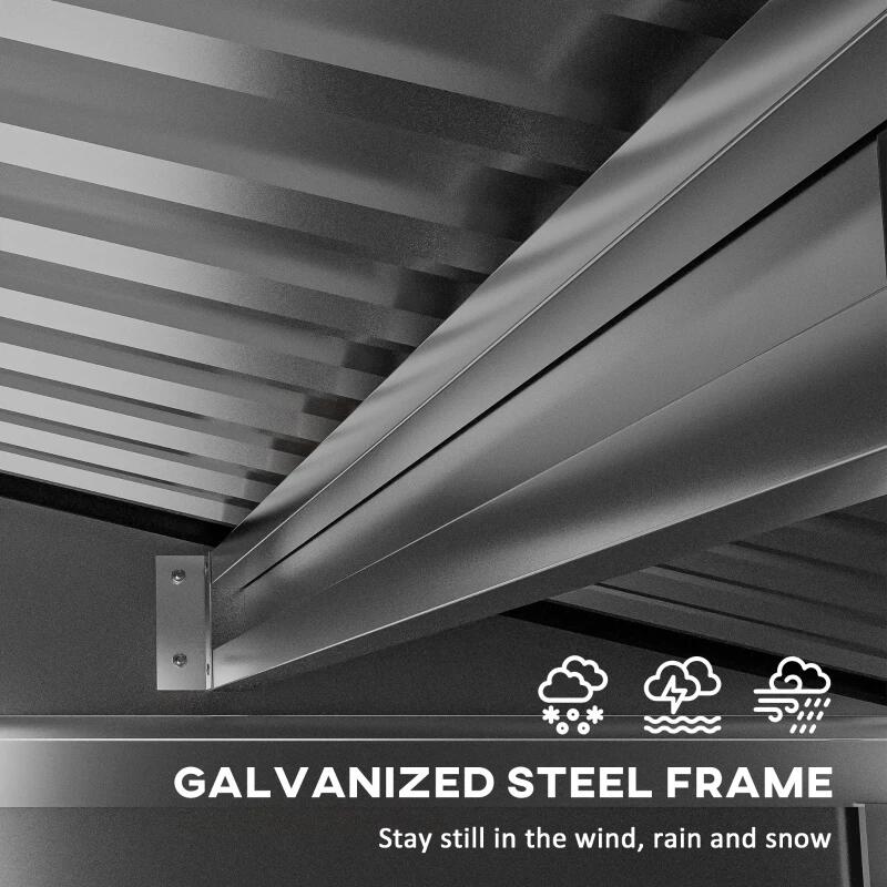 - Acélból és polipropilénből készült, kiváló minőségű anyagokból, amelyek ellenállnak a külső környezet olykor kedvezőtlen viszonyainak, mint például az eső vagy az erős napfény. A stabil acélszerkezet védve van a rozsdától és az időjárás viszontagságaitól.