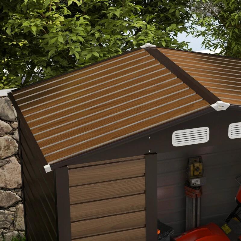 Kerti fészer/tároló fészer szerszám tárolására, acél, kesztyűvel, zárral és kulccsal, tölgy barna, 190x131x188 cm