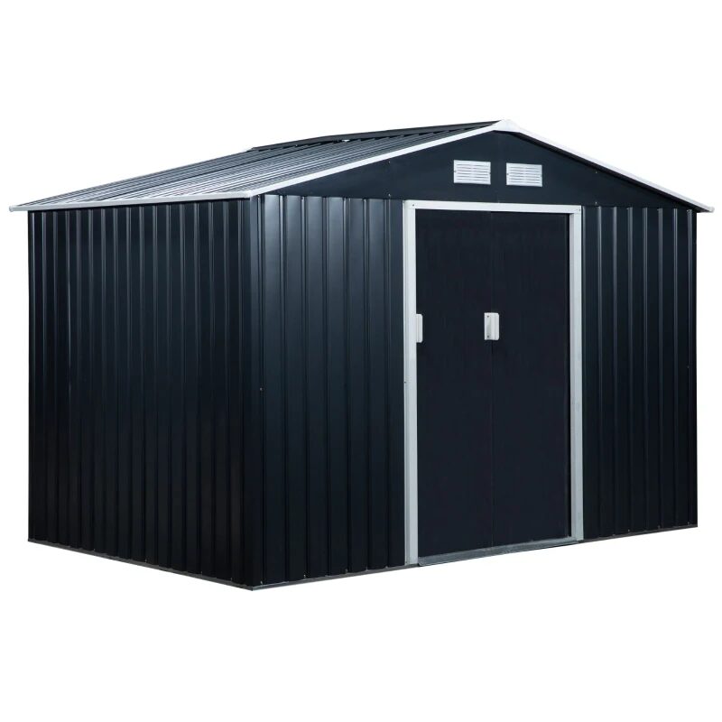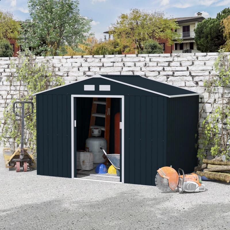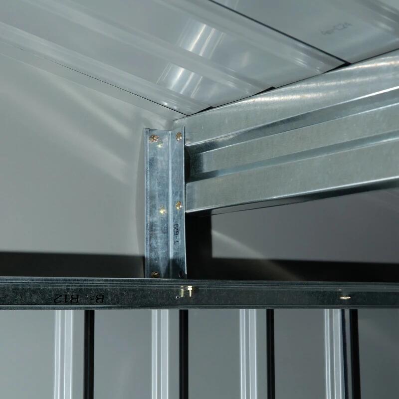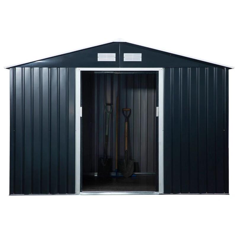 Kerti fészer/tároló fészer szerszám tárolására, alapszerkezettel, acél és PP, sötétszürke, 277x195x192 cm