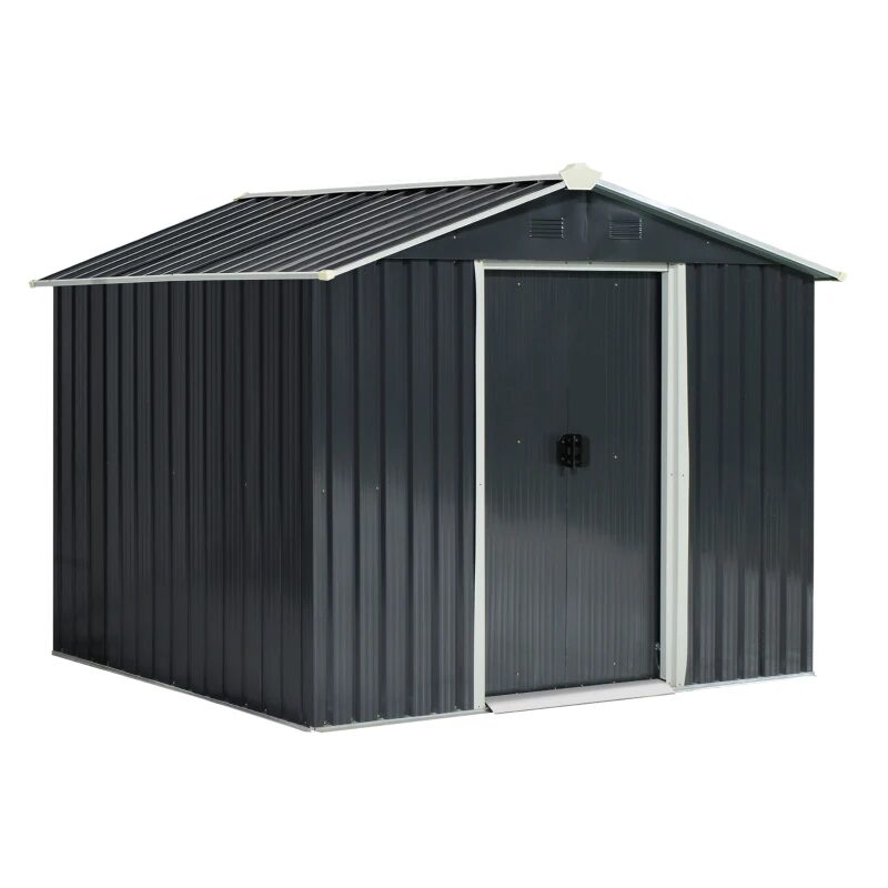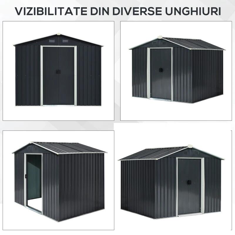 Kerti fészer/tároló fészer szerszámok tárolására, acél és PP, fekete, 236x174x190 cm